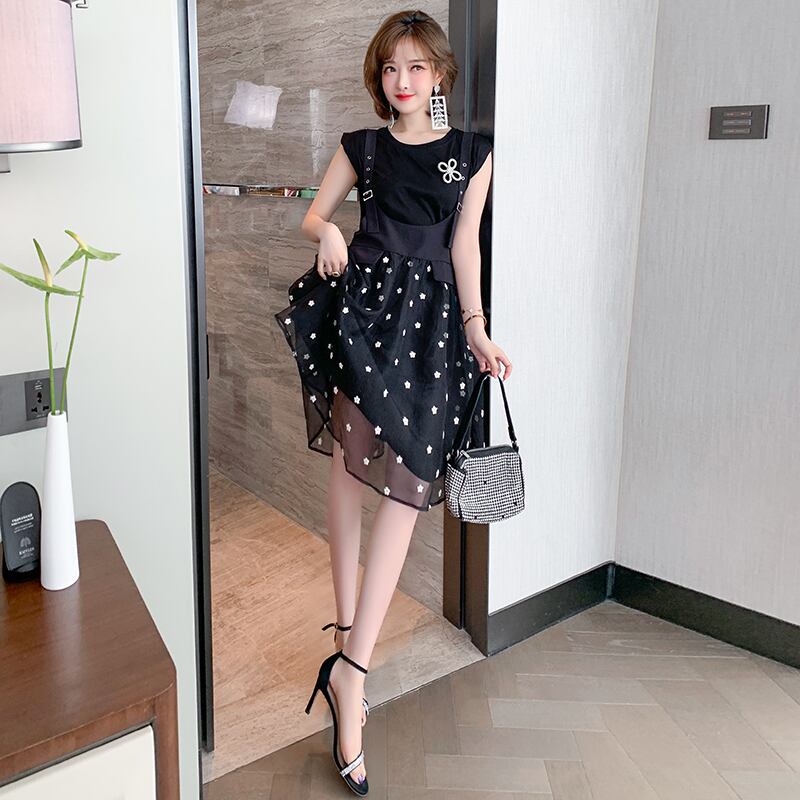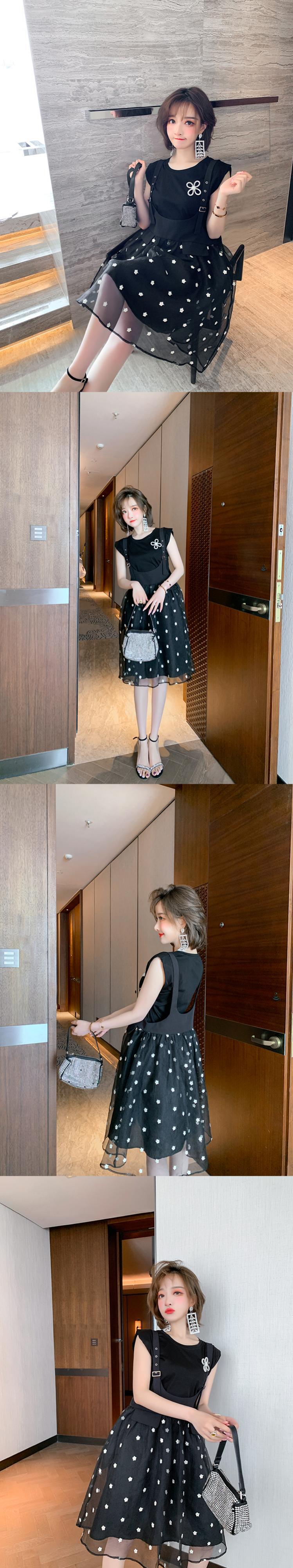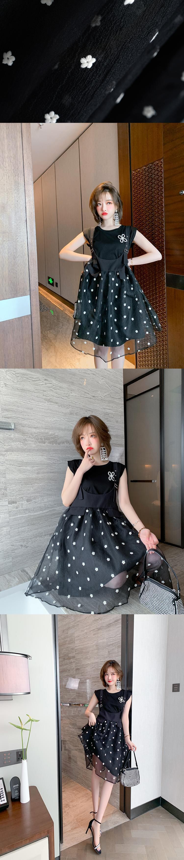 Flowerデザイン Tシャツ メッシュドレス サマー レッド 刺繍 夏物 フラワーデザイン MIUCO19315993921