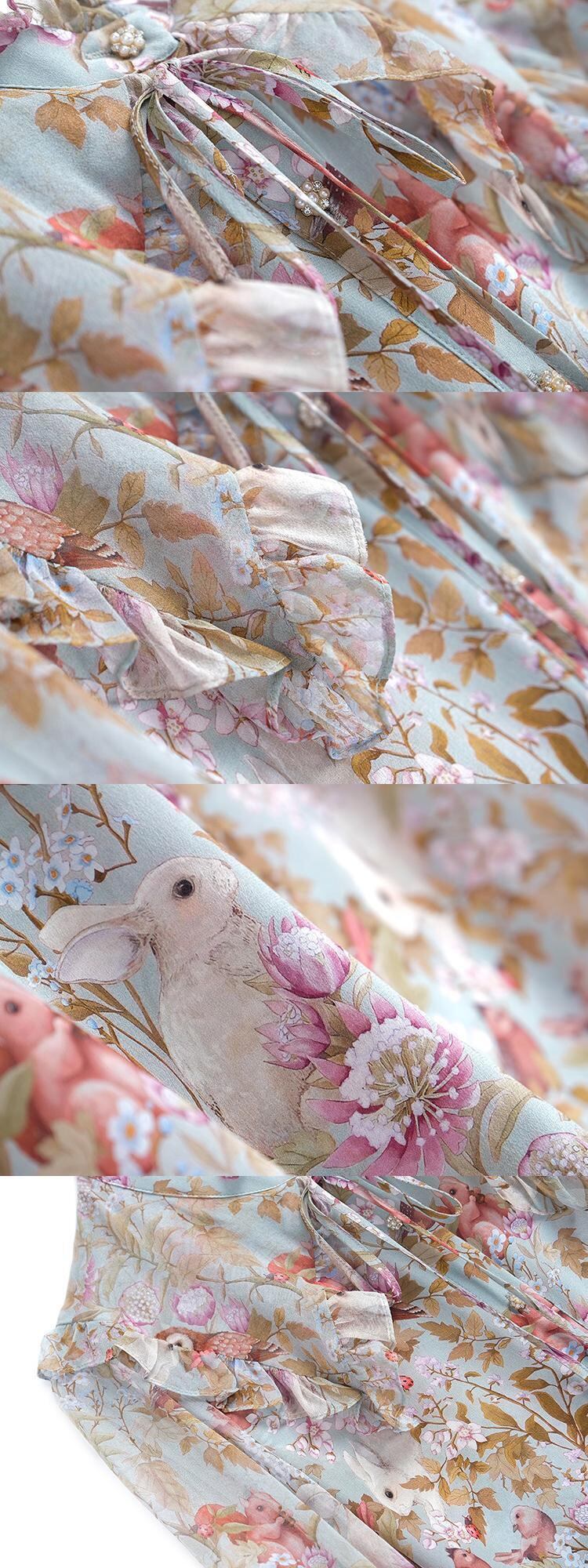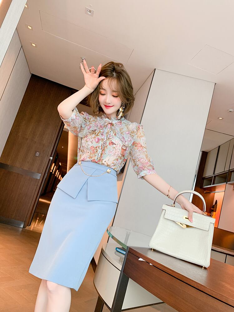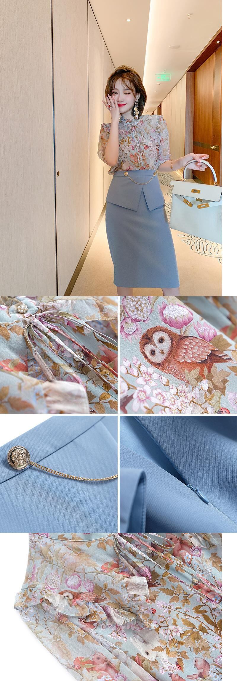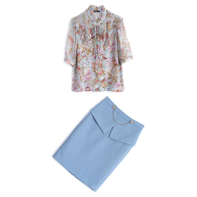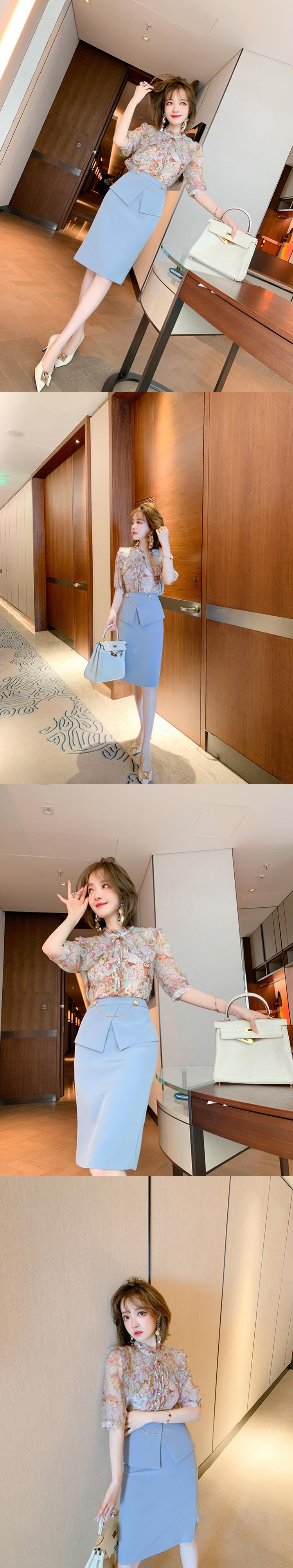 レースプリントシャツ ウェストAラインスカート セット スプリング 春物 サマー 夏物 ステッチ MIUCO42124655715