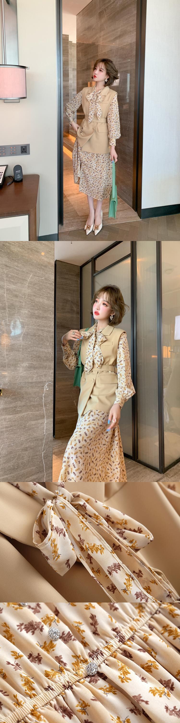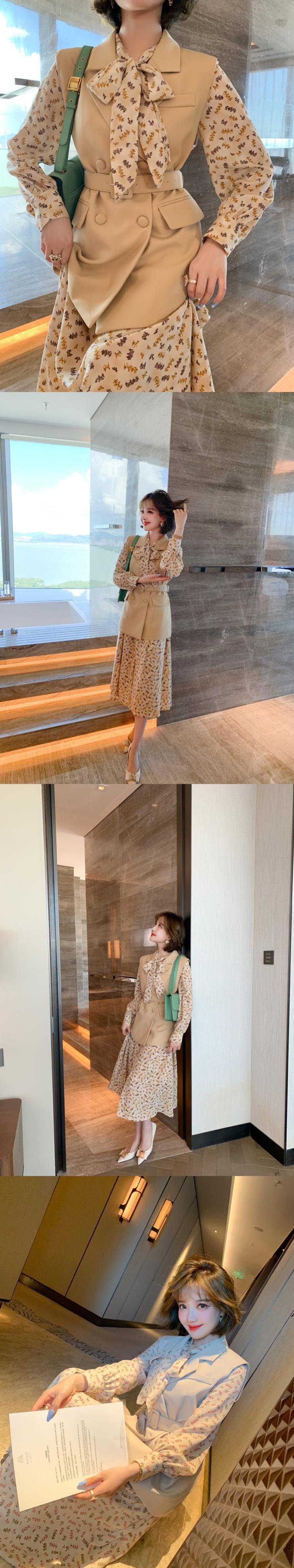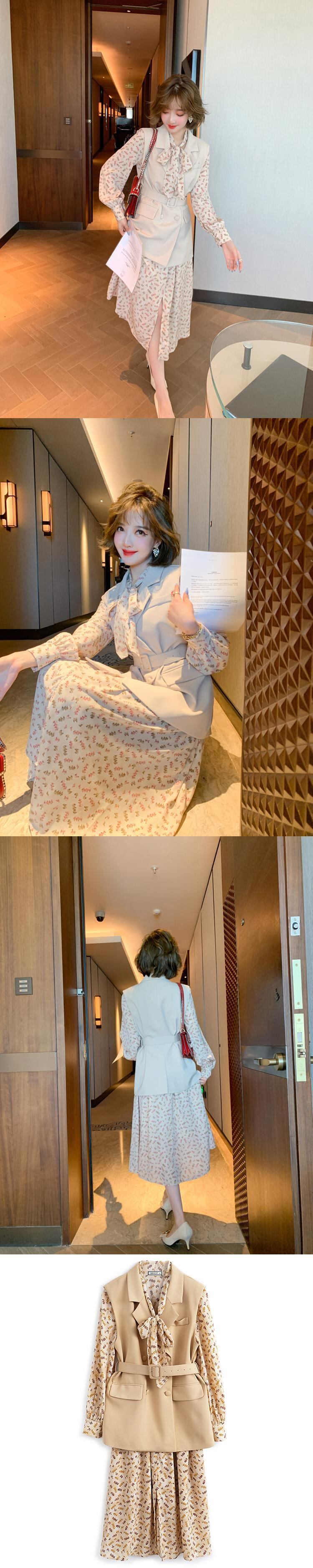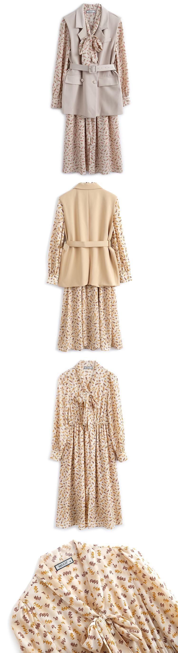 レースプリントドレス ベルト ウェスト リボン ハーネス MIUCO71228101113