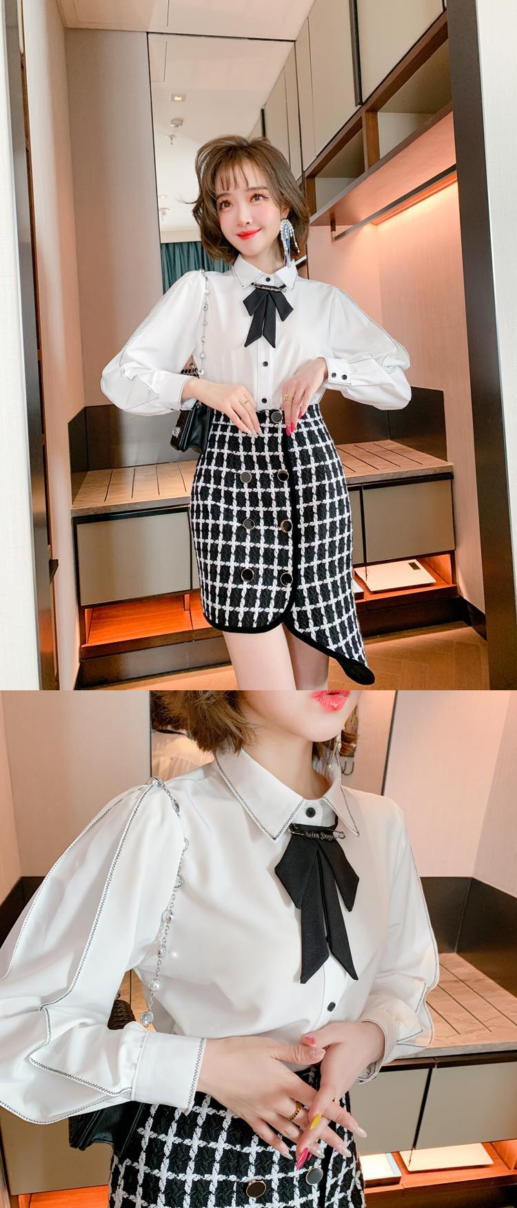 ラインカラーリボンホワイトシャツ スプリング 春物 MIUCO74000861239