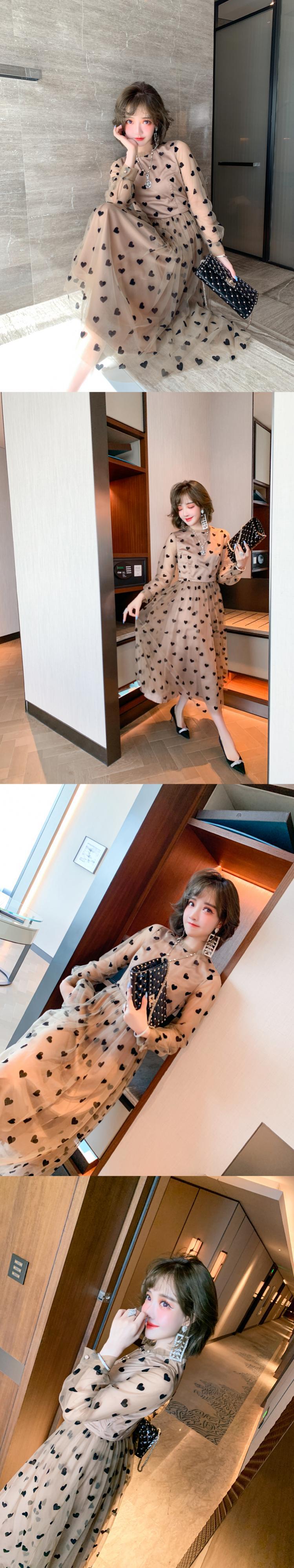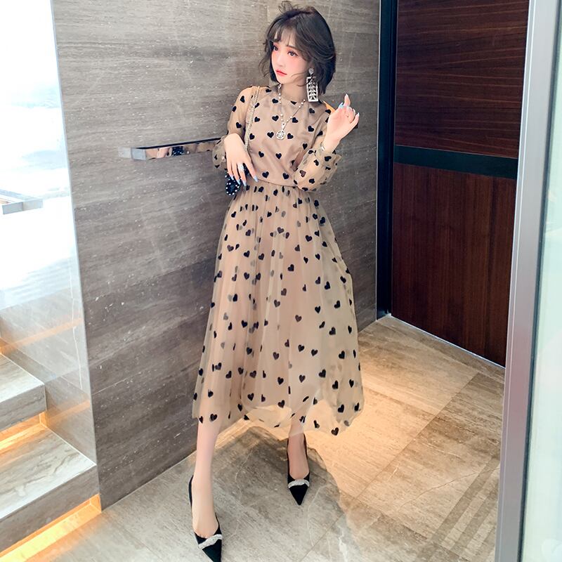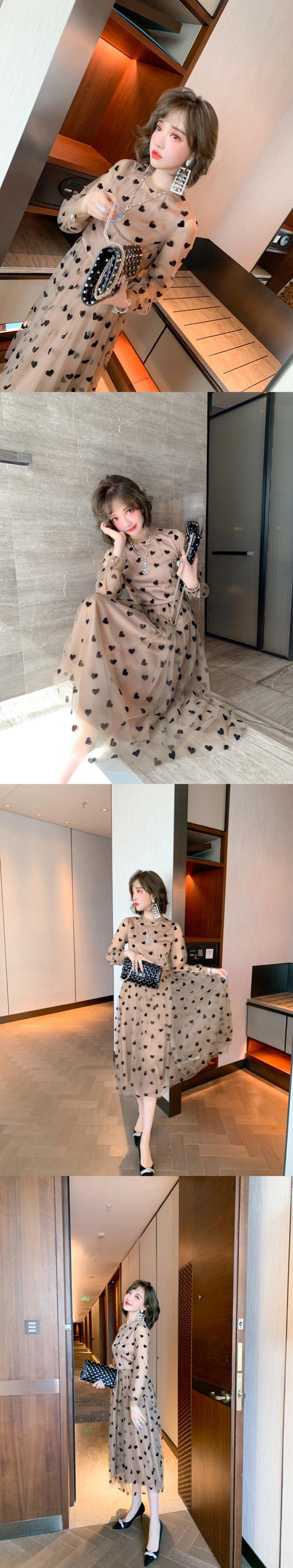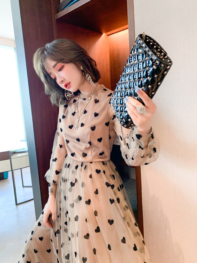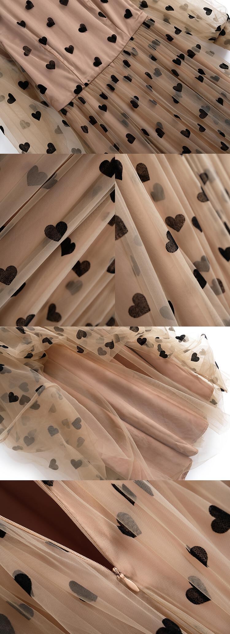 レースカラースタンダードプリントメッシュドレス オータム レトロ エレガント 秋物 MIUCO16436781585