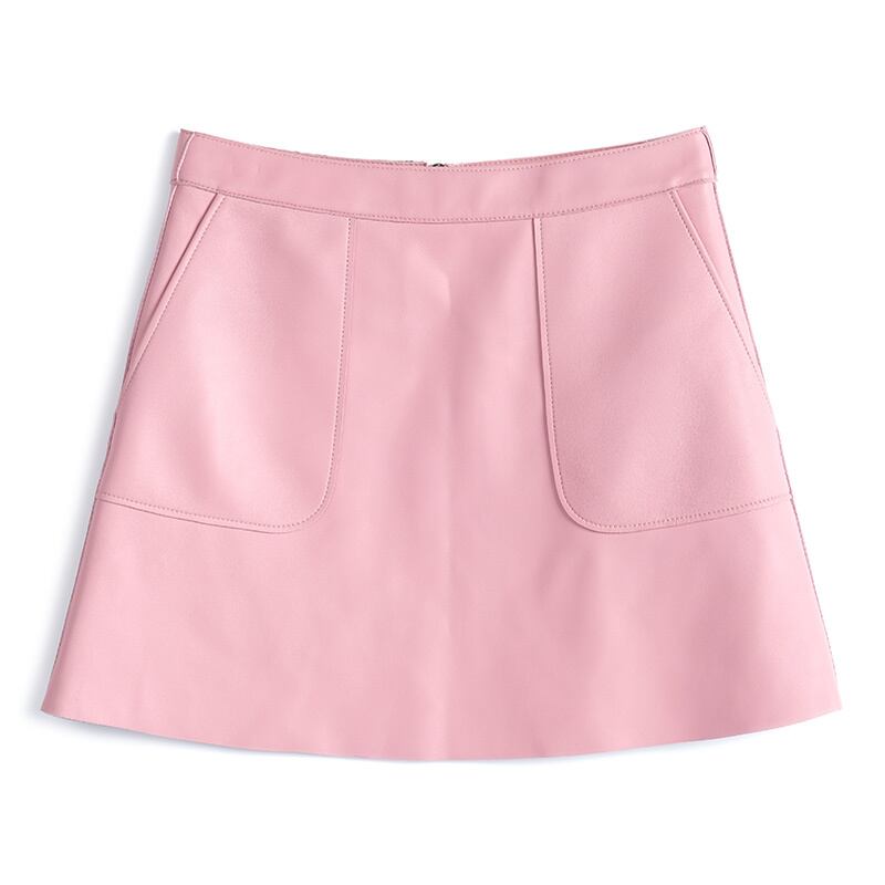 ウェスト薄手カラーAラインポケットレザースカート ピュア MIUCO72682752883
