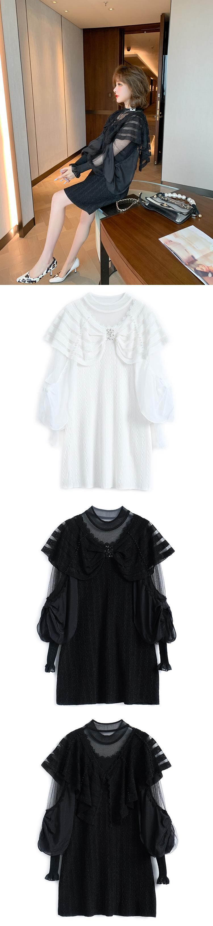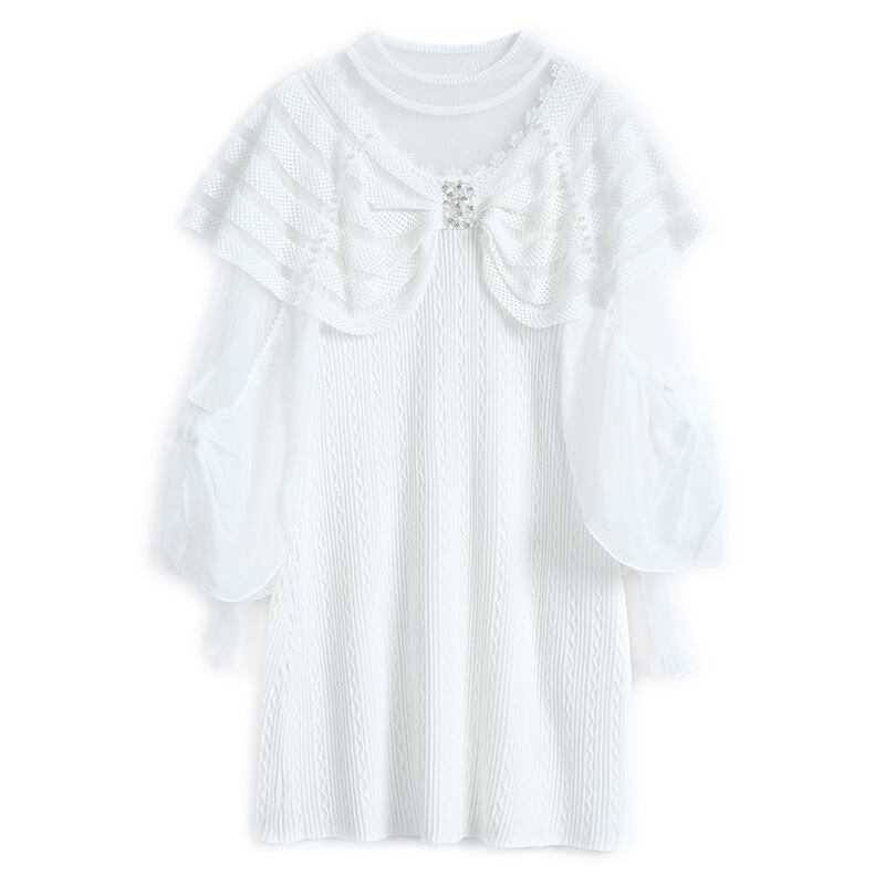 カラーレースメッシュニットドレス オータム 秋物 MIUCO66042163392