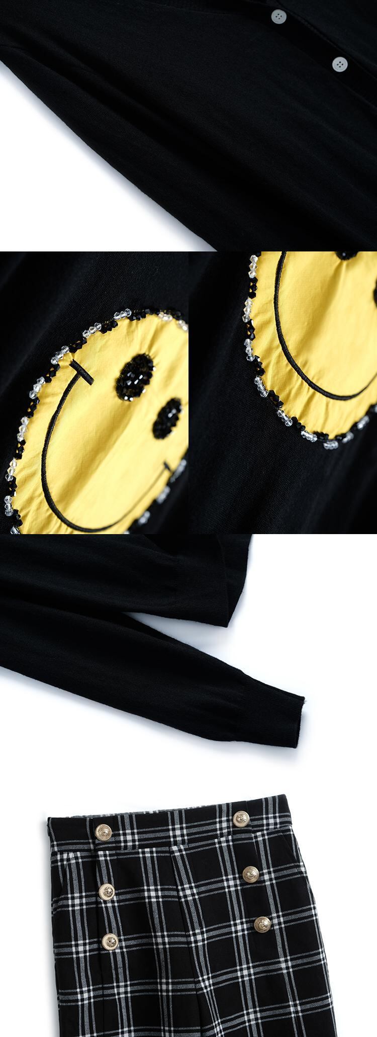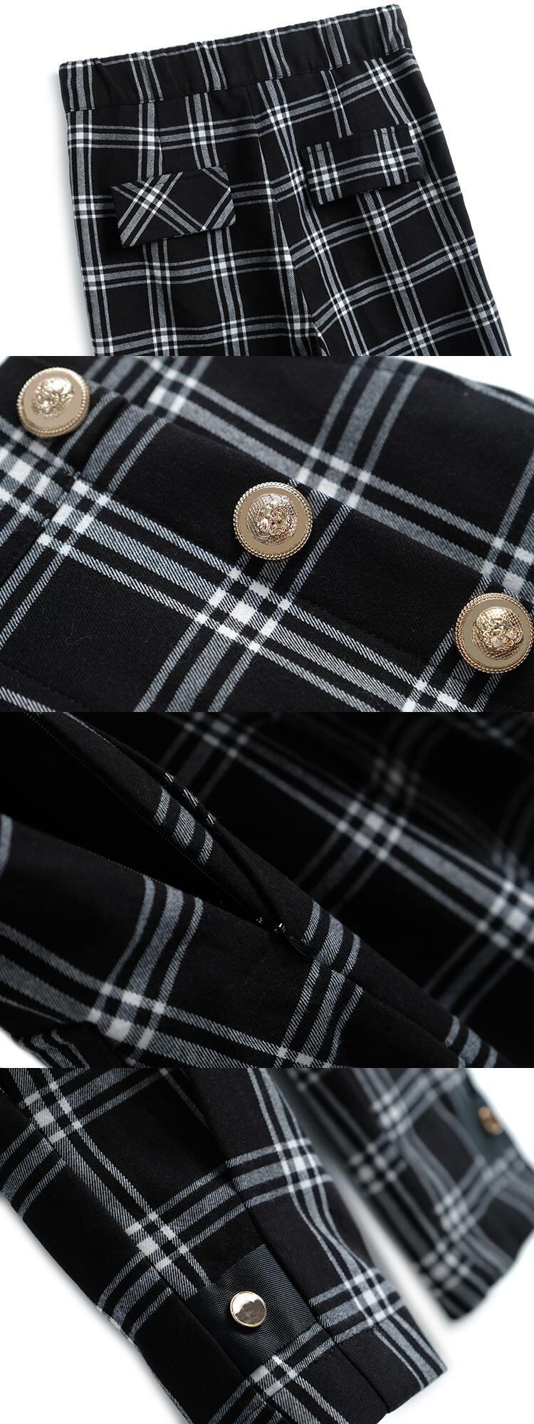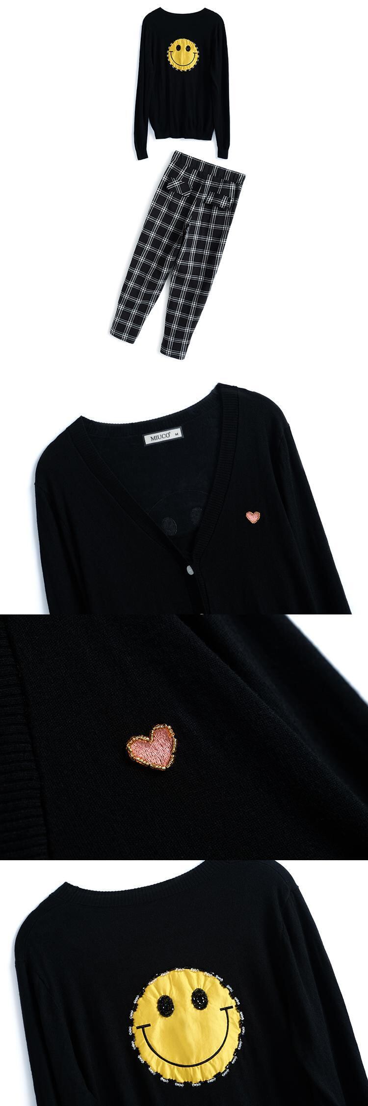カラーVネックニットカーディガンスタンダード格子柄ハイウェストカジュアルパンツ オータム レトロ 秋物 MIUCO23798912585