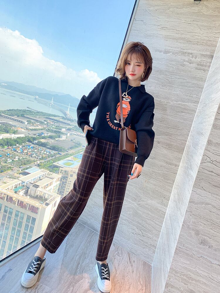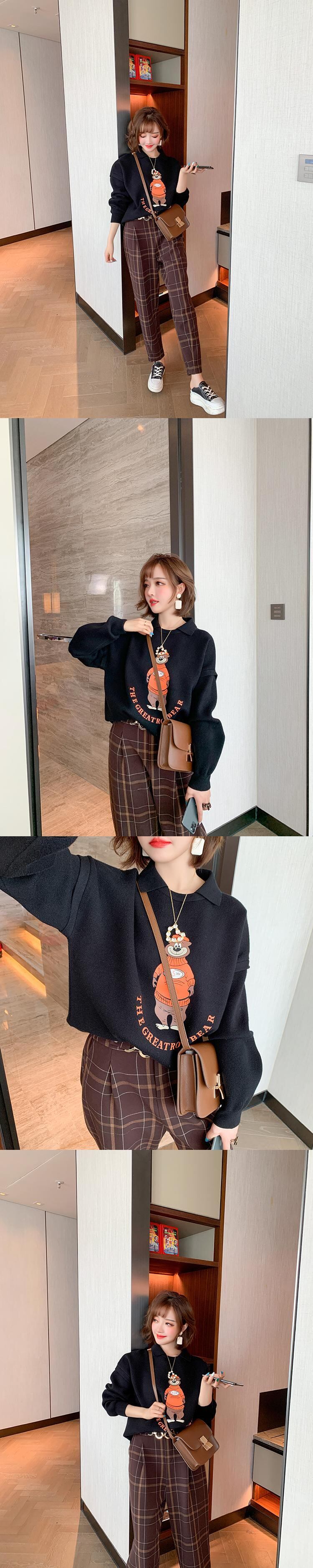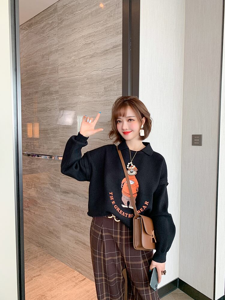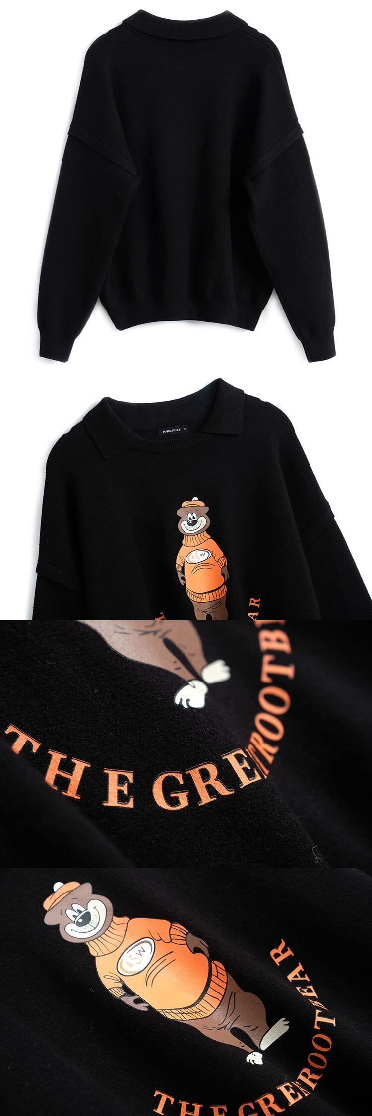 プリントニットプルオーバー カジュアルセーター オータムウィンター 秋物 冬物 ステッチ MIUCO23558919586