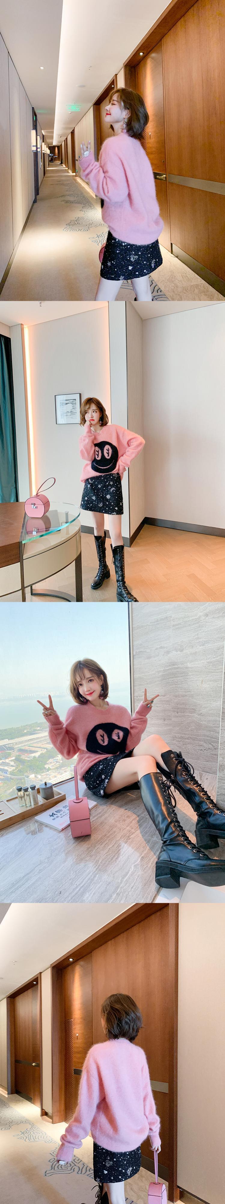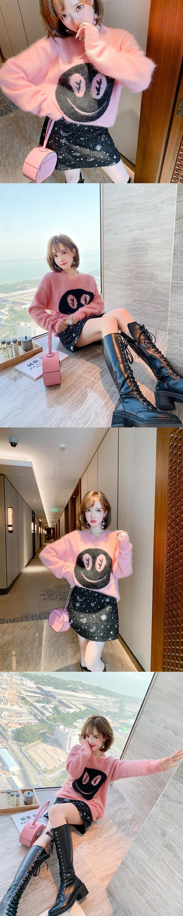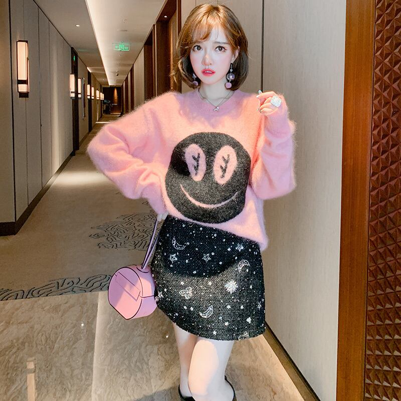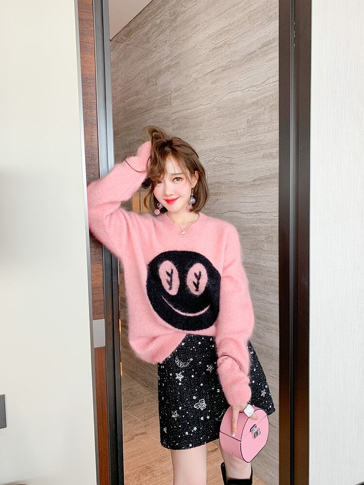 ルーズ薄手ラウンドネックニットセーター ウィンター ふわふわ 冬物 Oネック MIUCO3155663491