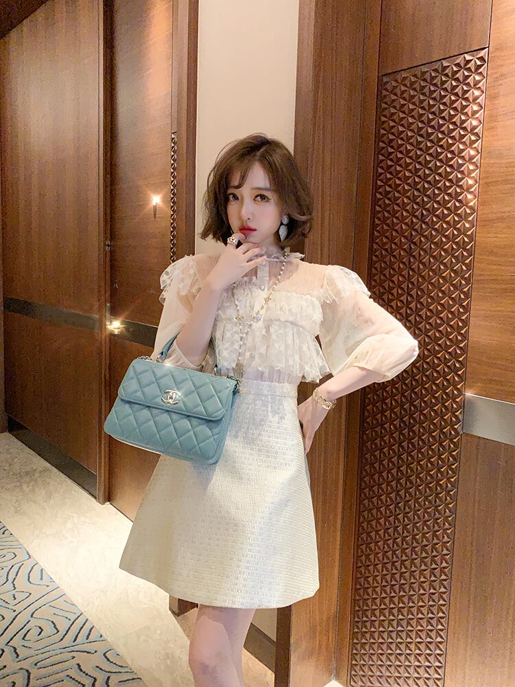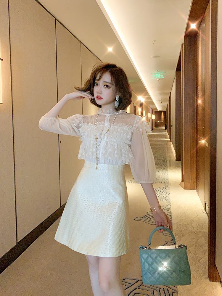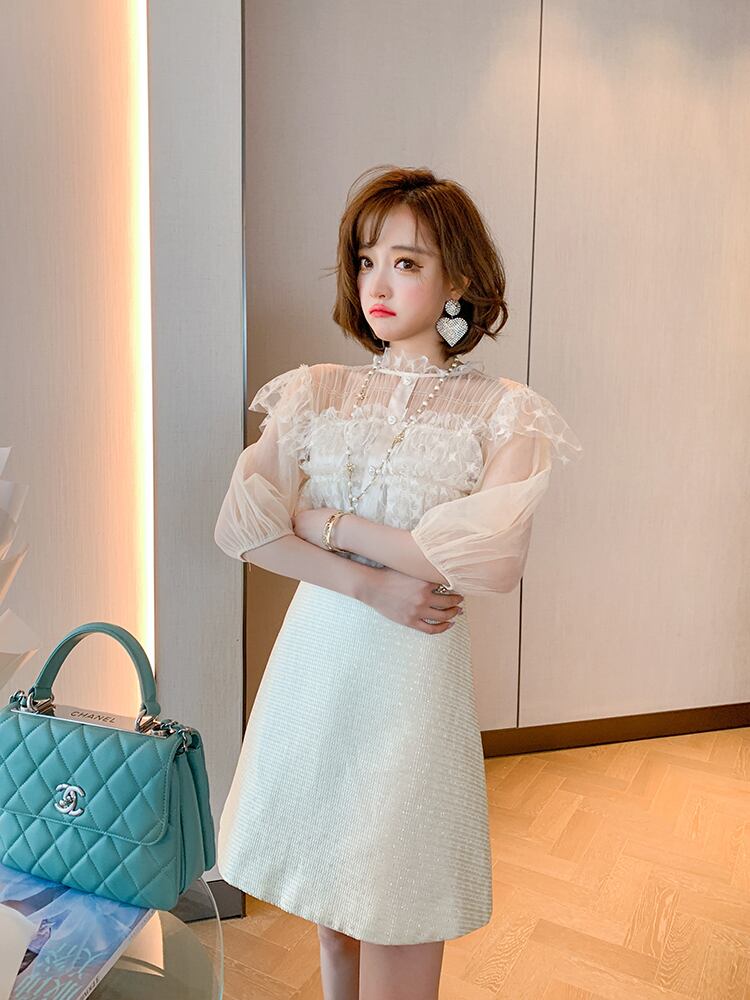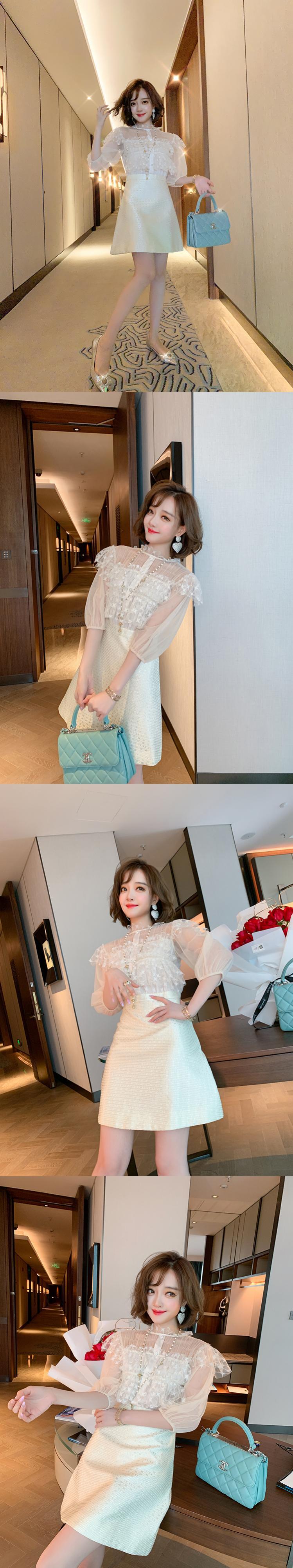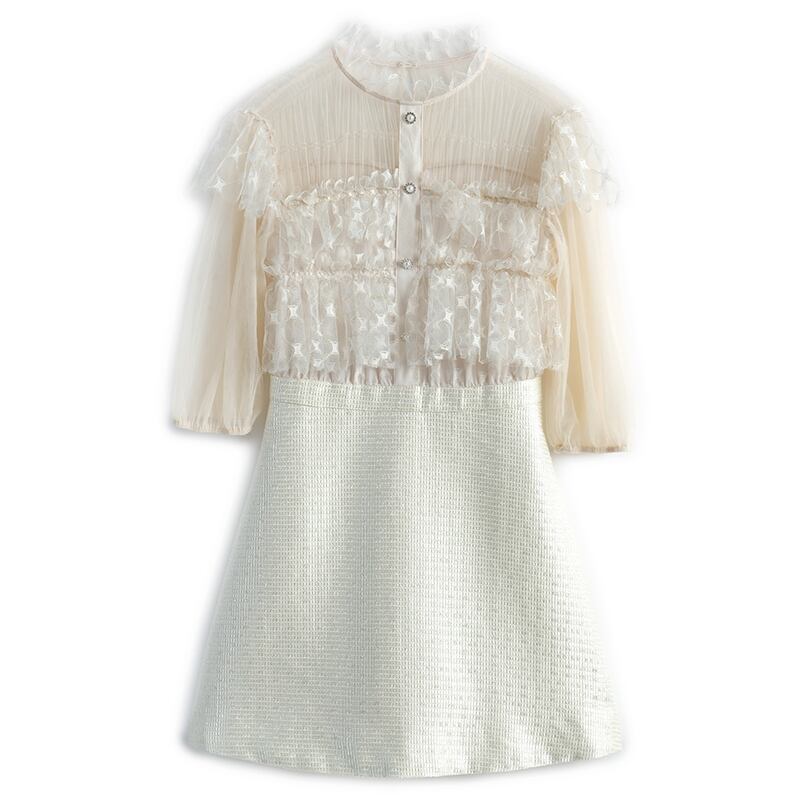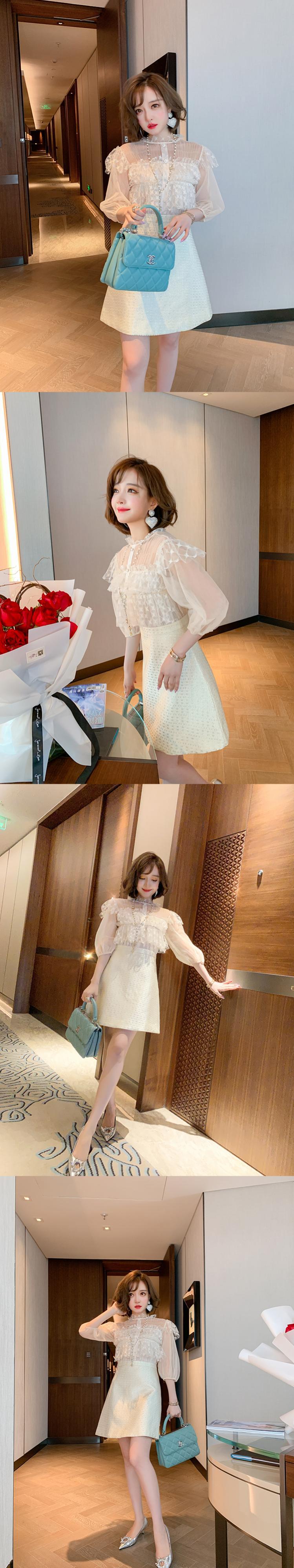 レースメッシュスリーブジャカードAラインドレス サマー ランタンスリーブ 夏物 MIUCO1646990622
