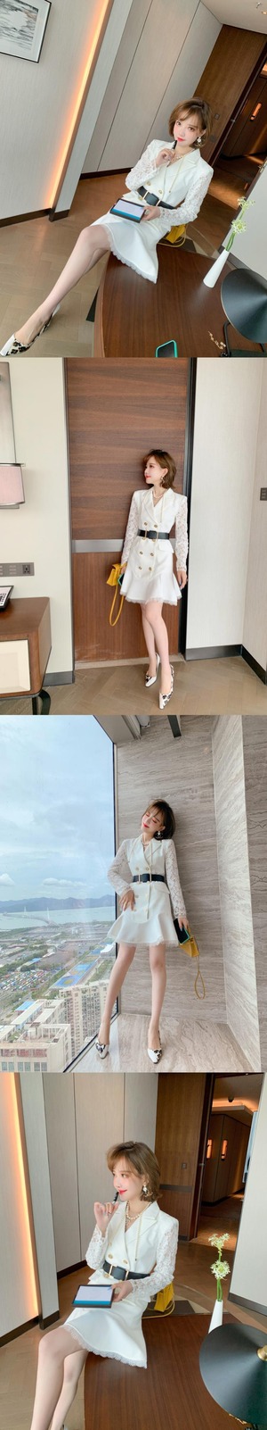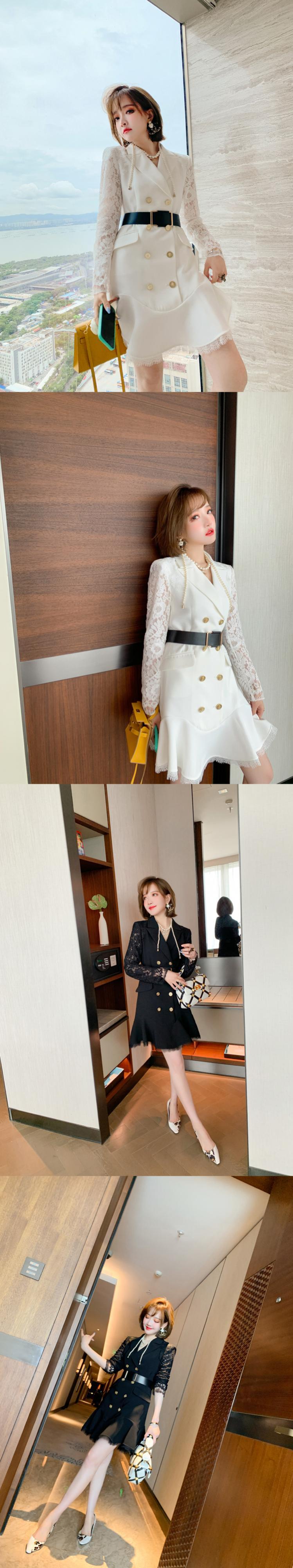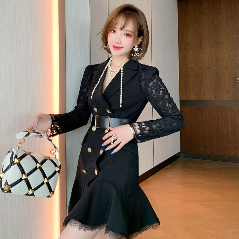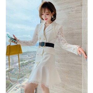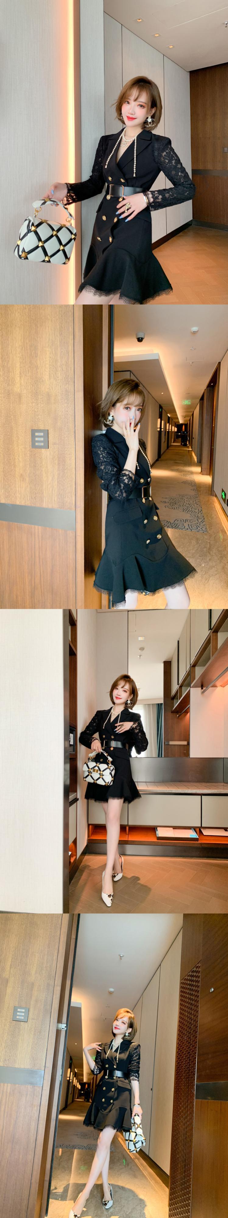 カラーレースウェストドレス オータムスタイル ロング 秋物 MIUCO66993277903