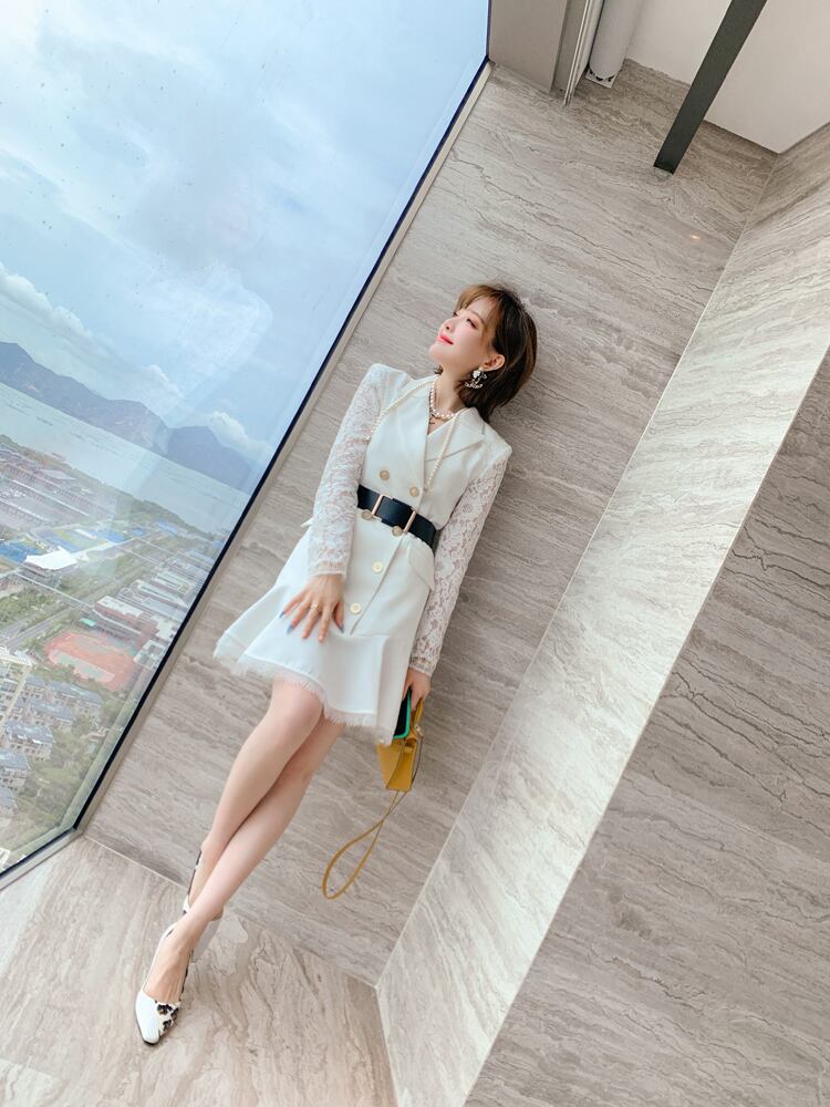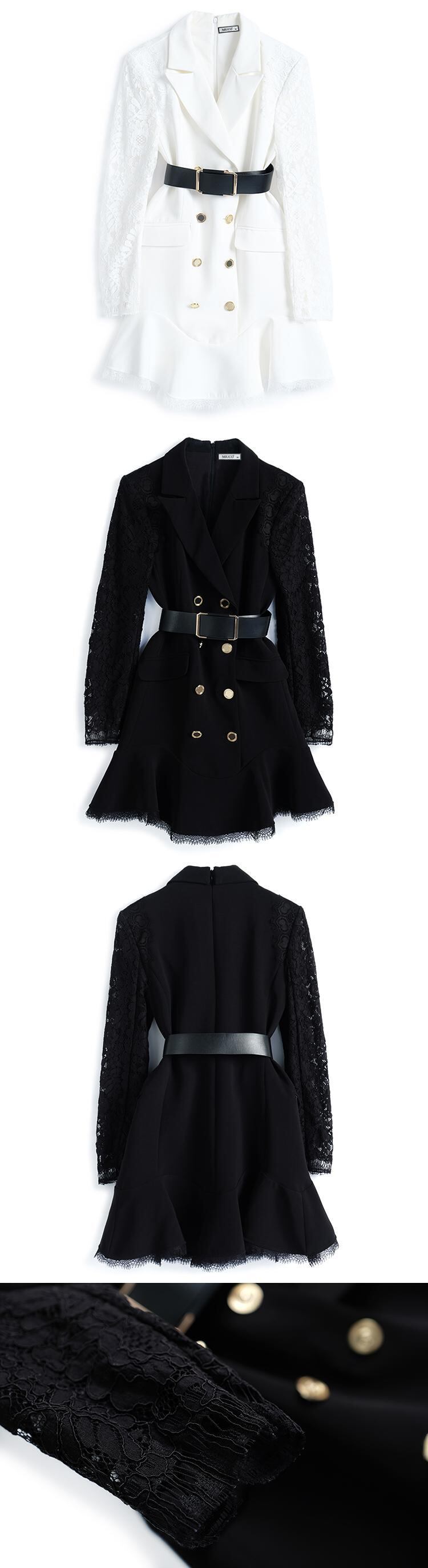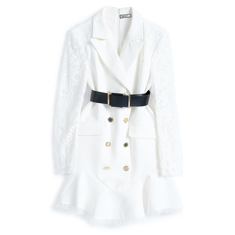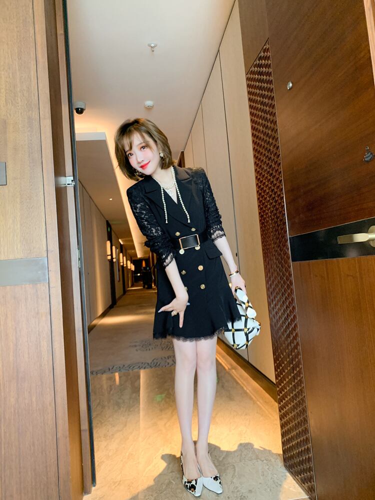 カラーレースウェストドレス オータムスタイル ロング 秋物 MIUCO66993277903
