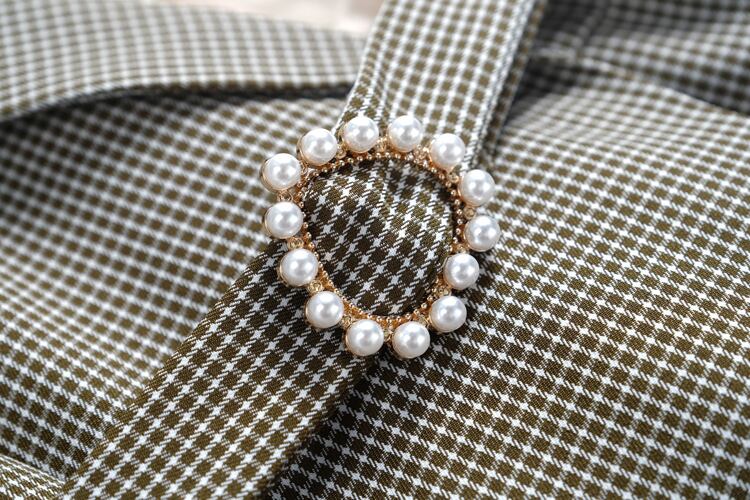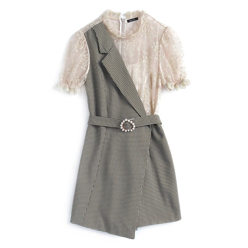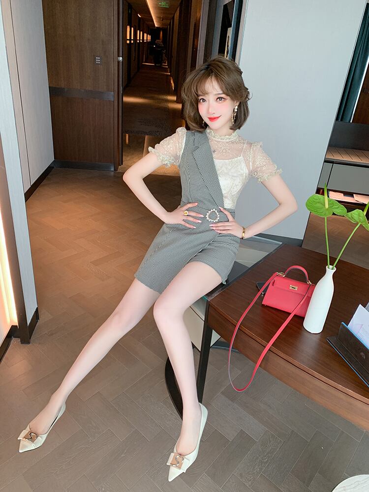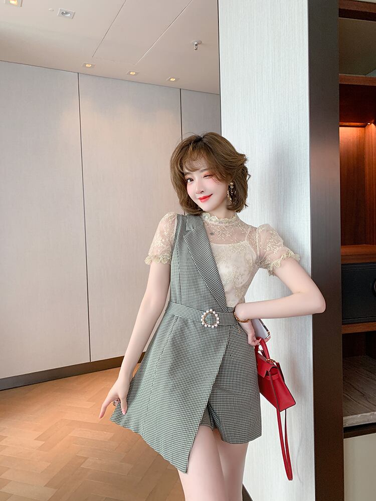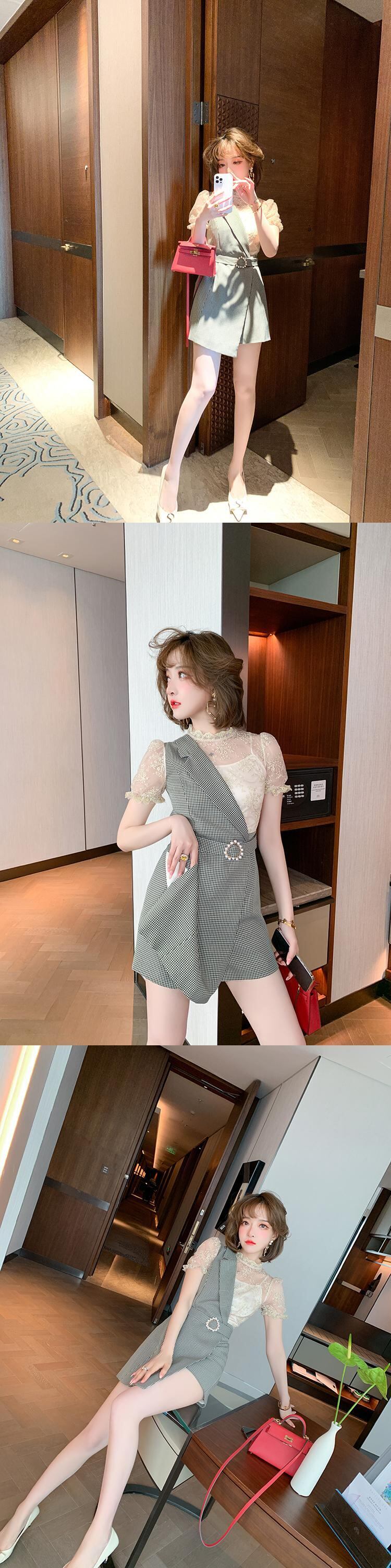 レースカラー格子柄ジャンプスーツ オールインワン サマースタイル 夏物 ステッチ MIUCO94812030961