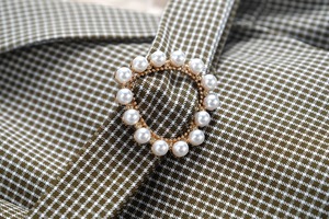 色:チェック柄とアプリコット
