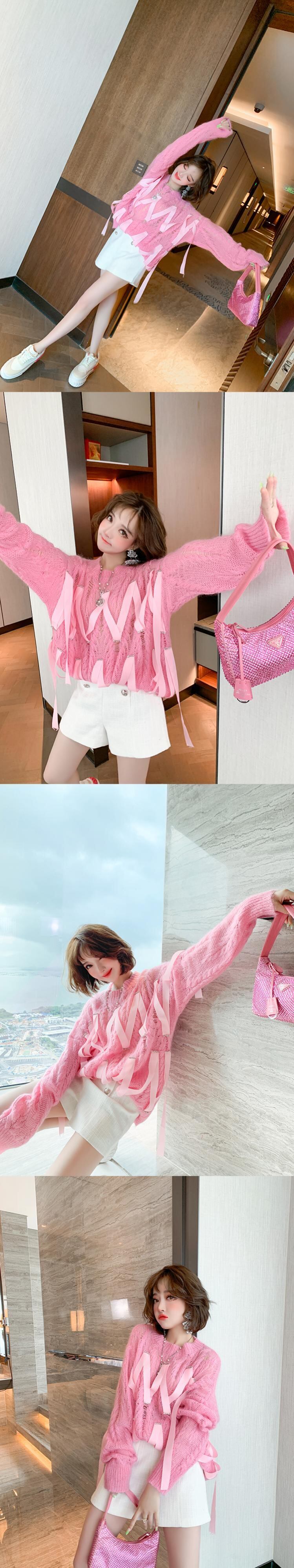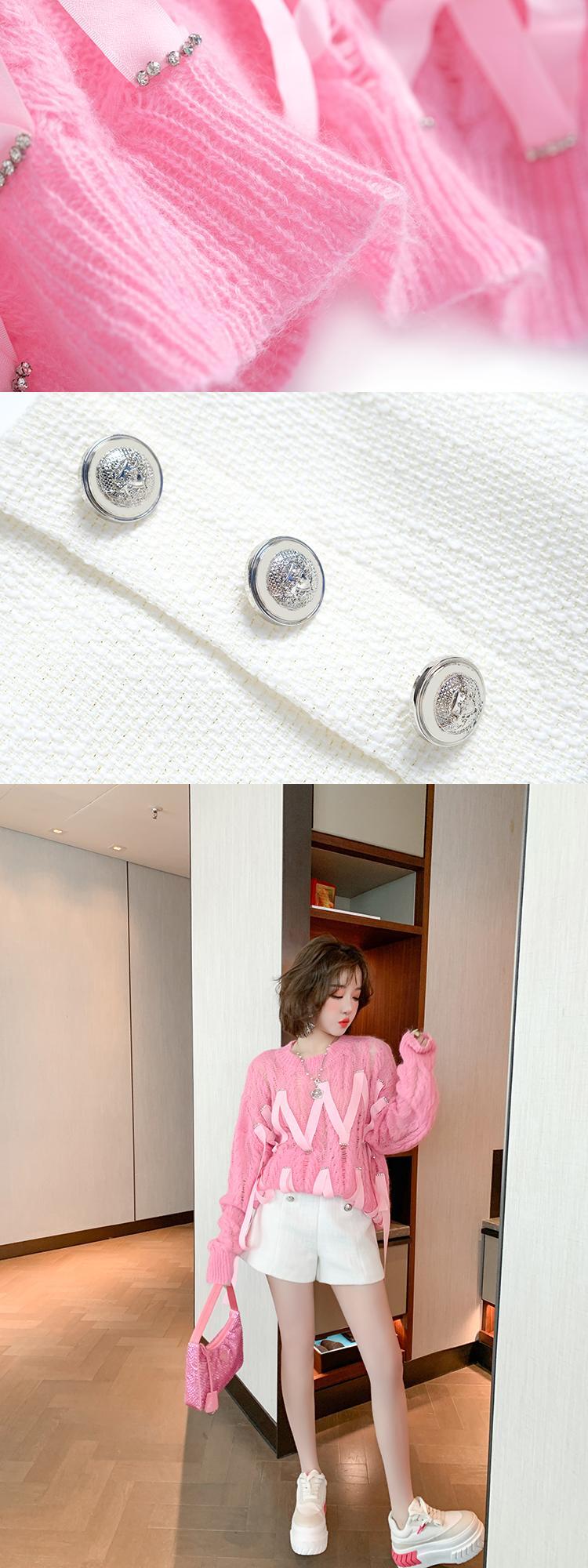 ラウンドネックニットトップス ハイウェストウェストショーツ オータム 秋物 ブルマー Oネック ステッチ MIUCO48542598119