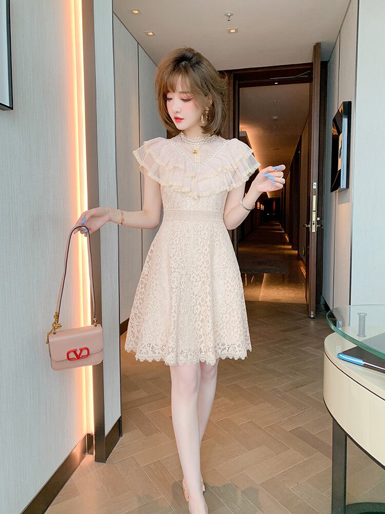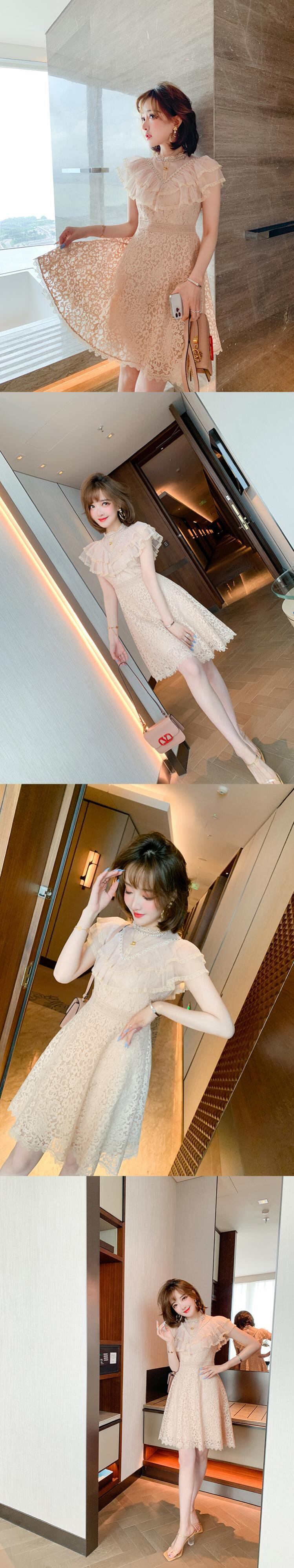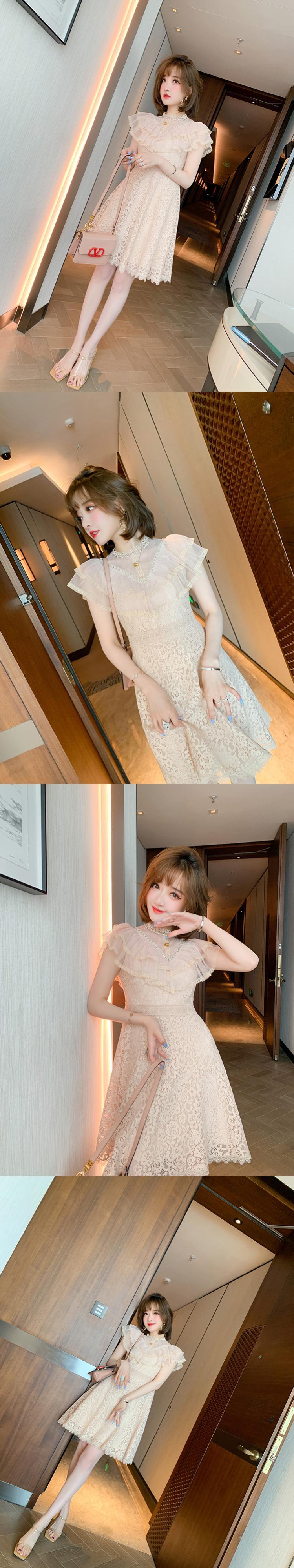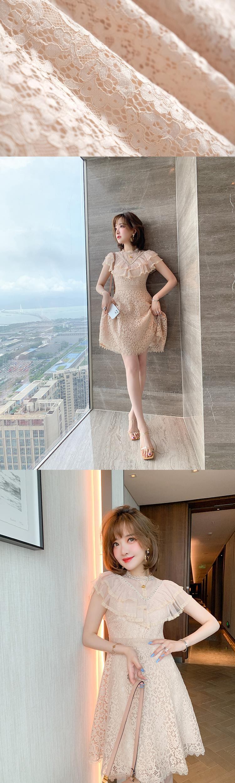 メッシュレースノースリーブウェストドレス オータム 秋物 ステッチ MIUCO40528247645
