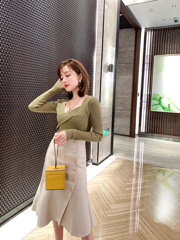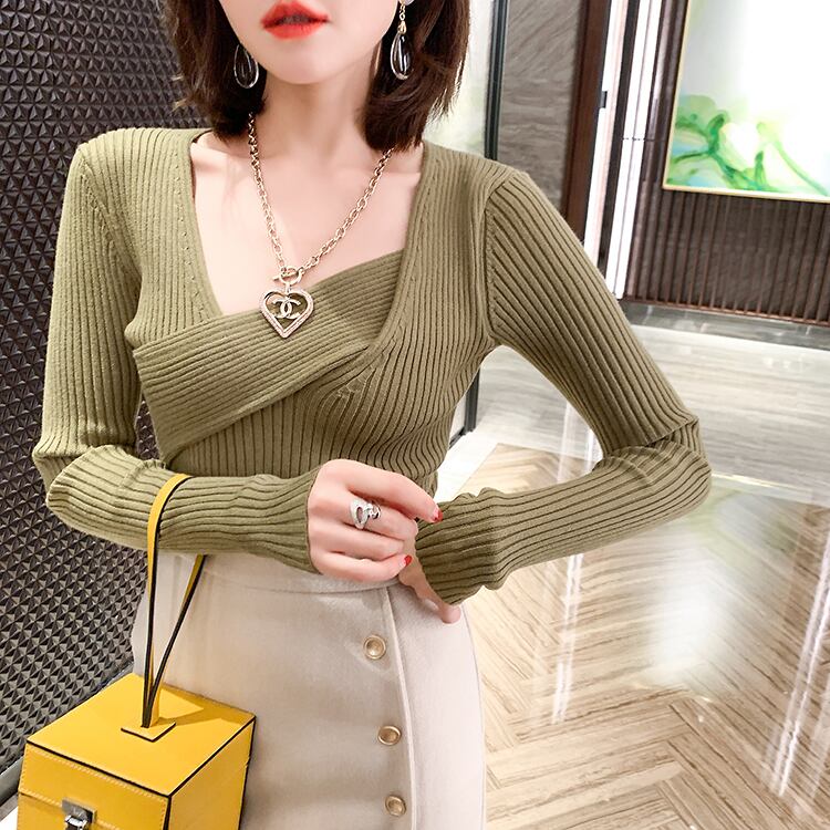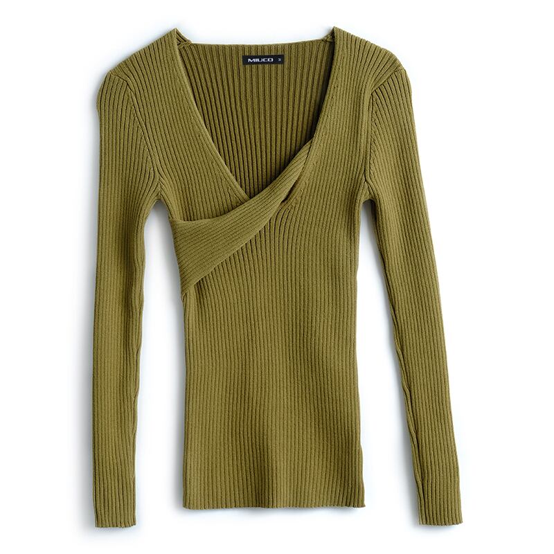 スタイルスリムニットセーター ストライプシャツ MIUCO21525102981