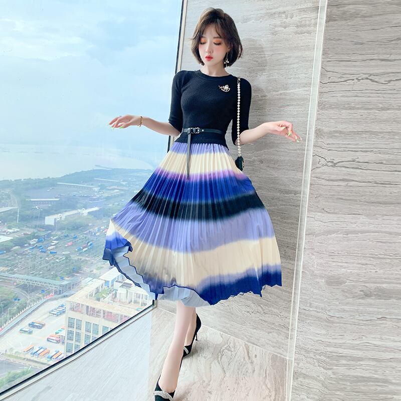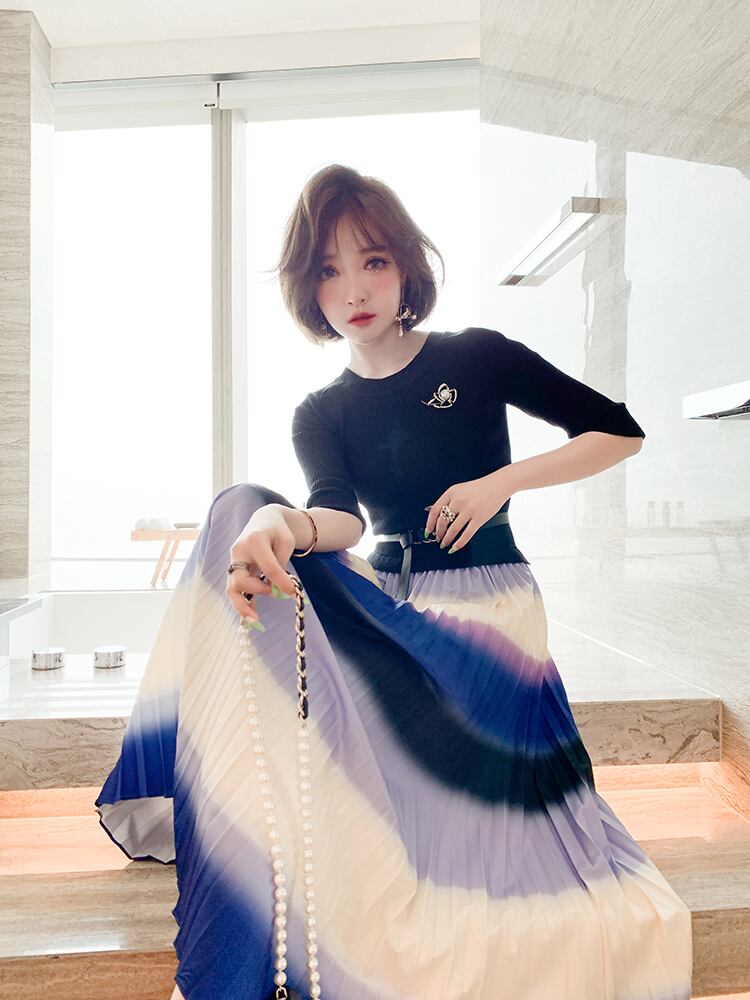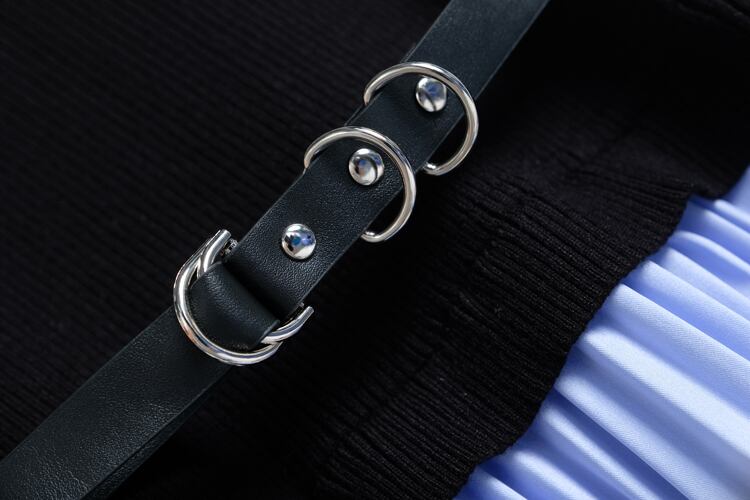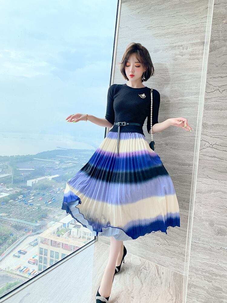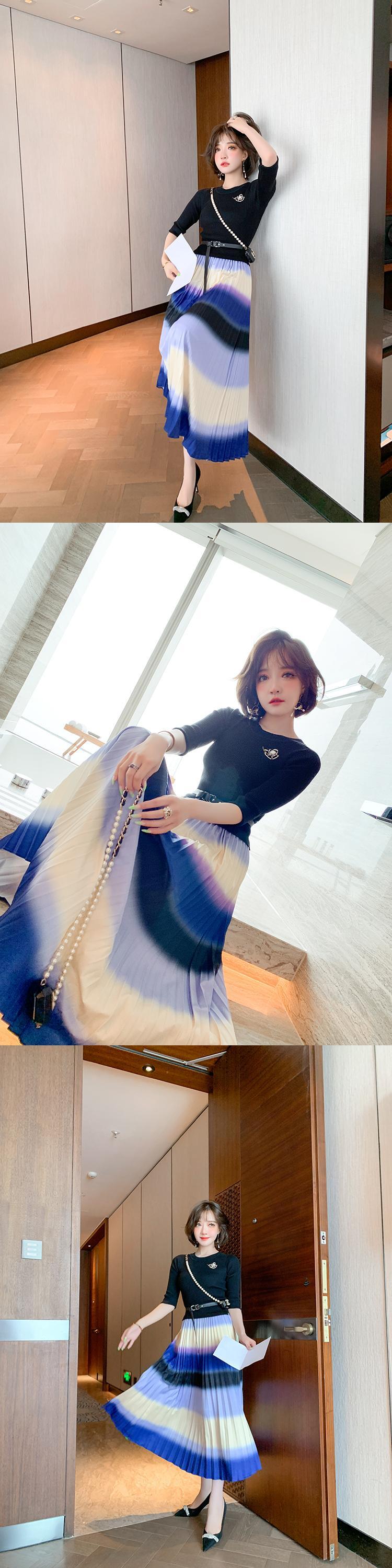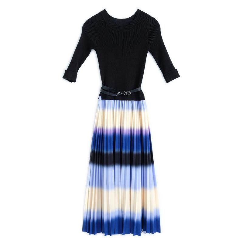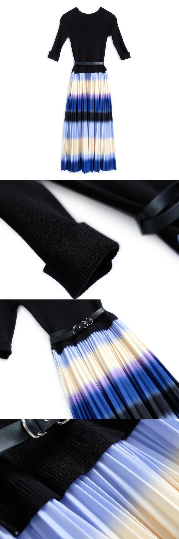ラウンドネックベルト ウェストプリーツスカート ドレス ハーネス Oネック MIUCO41353316642
