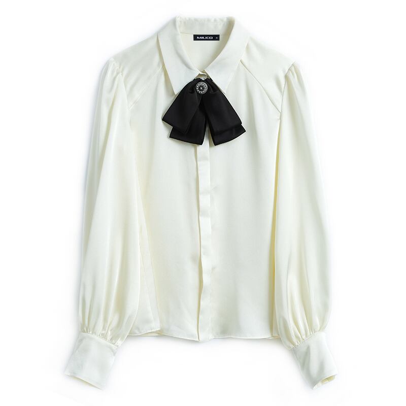 ビーズ カラーリボンスリーブシャツ オータム ランタンスリーブ 秋物 MIUCO72431214318