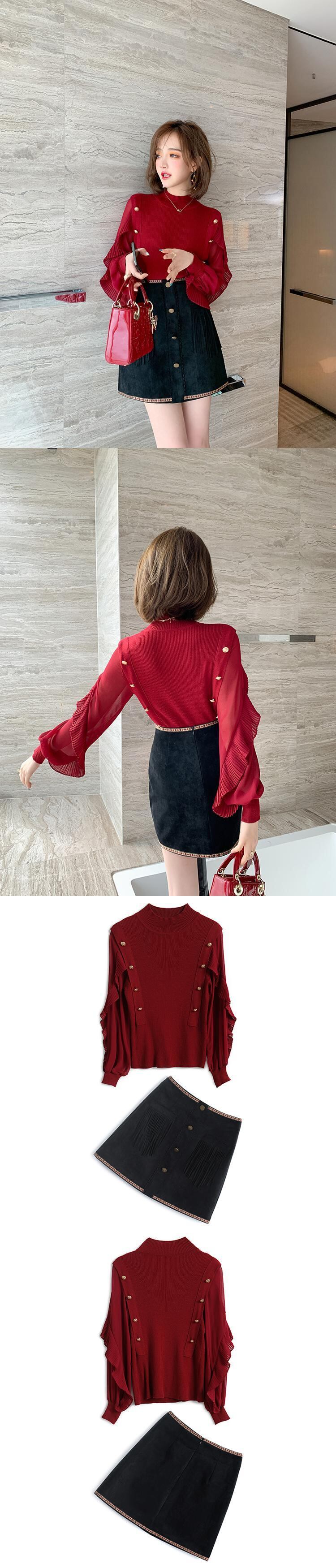 プリーツセーター スカート ウィンター 冬物 ステッチ MIUCO58779591268