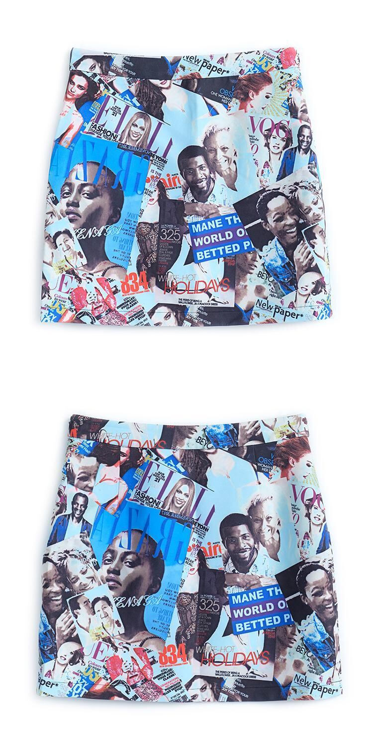 スタンダードモダンプリント柄ウェストAラインショートスカート オータム レトロ 秋物 MIUCO83997031503