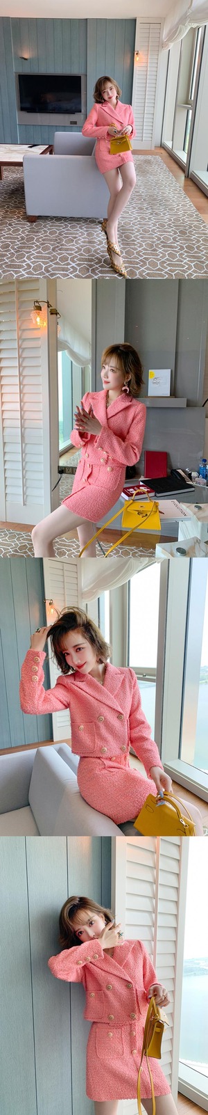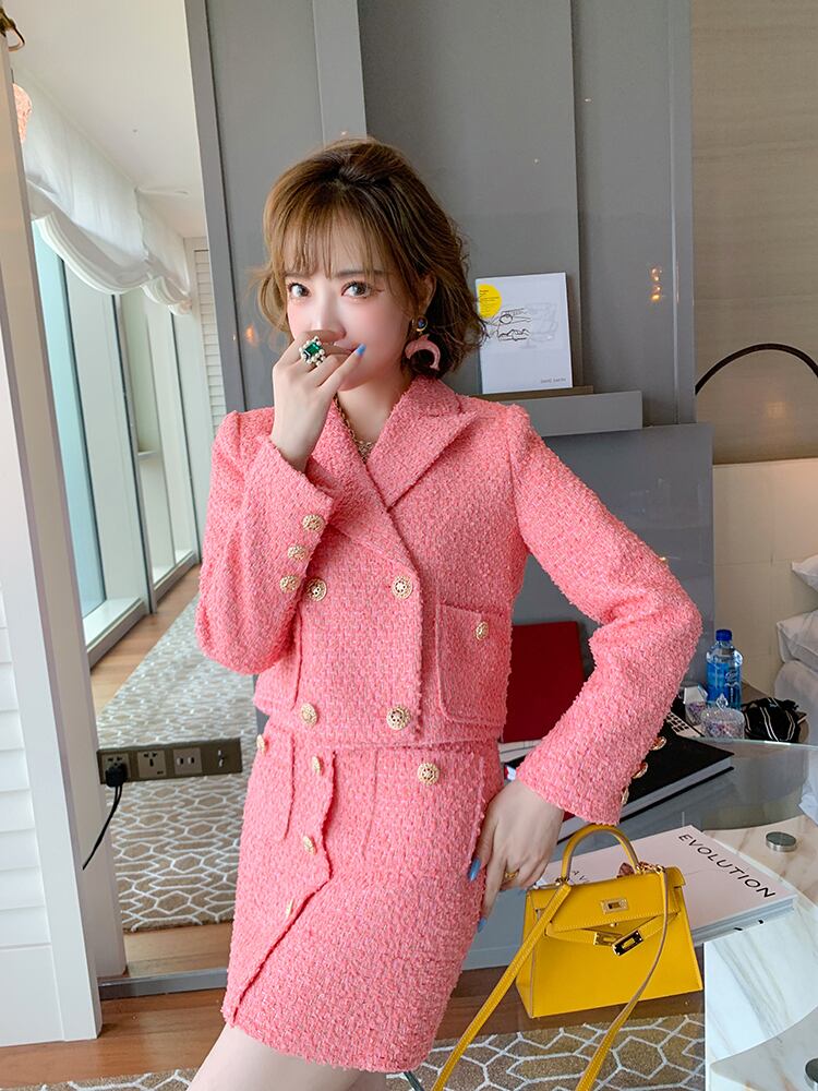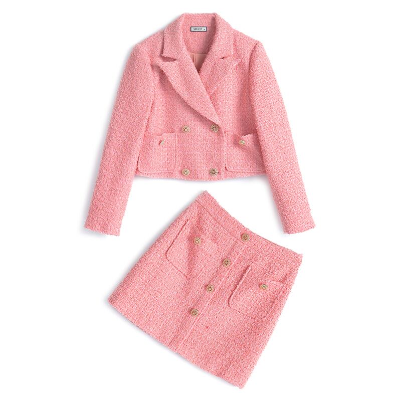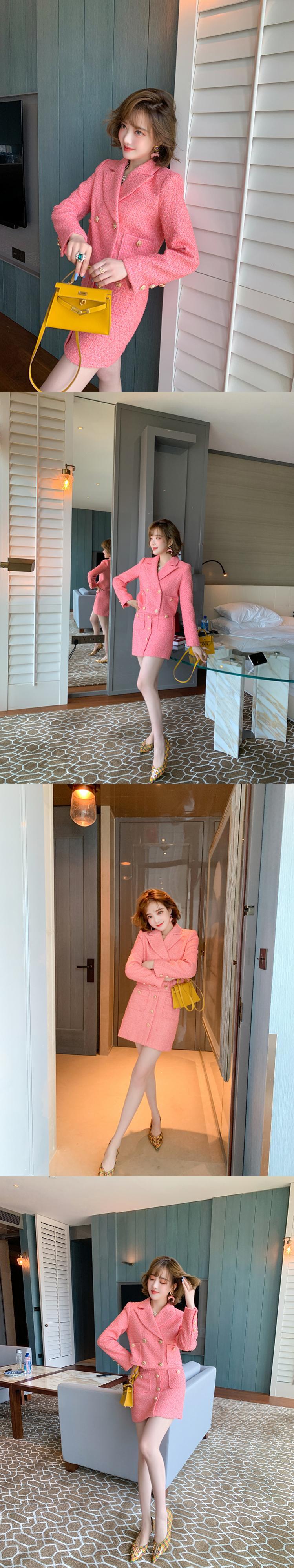 ダブルブレストブレザー ハイウェストAラインツィードスカート オータム 秋物 MIUCO87886364777