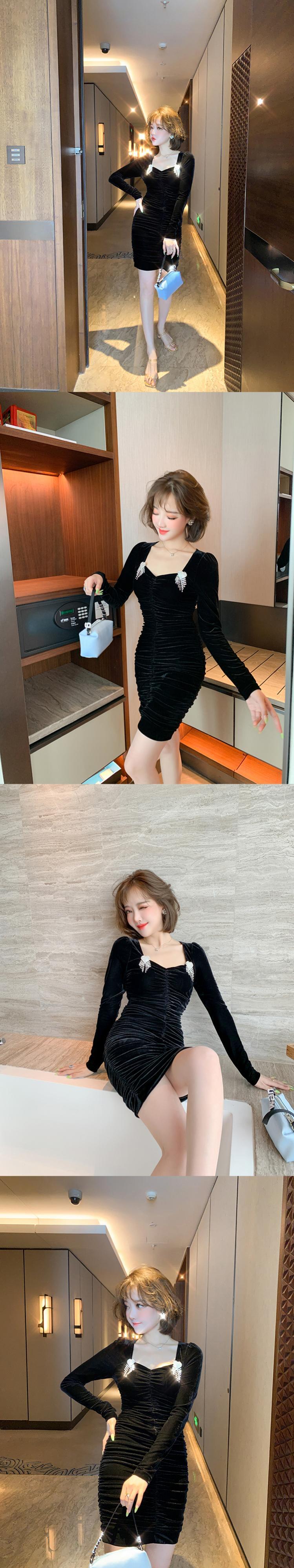 スタイルプリーツスリムドレス オータム 秋物 スクウェア MIUCO83121090494