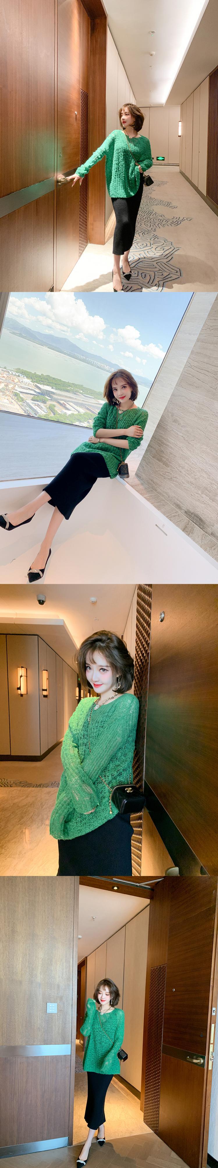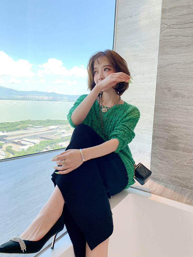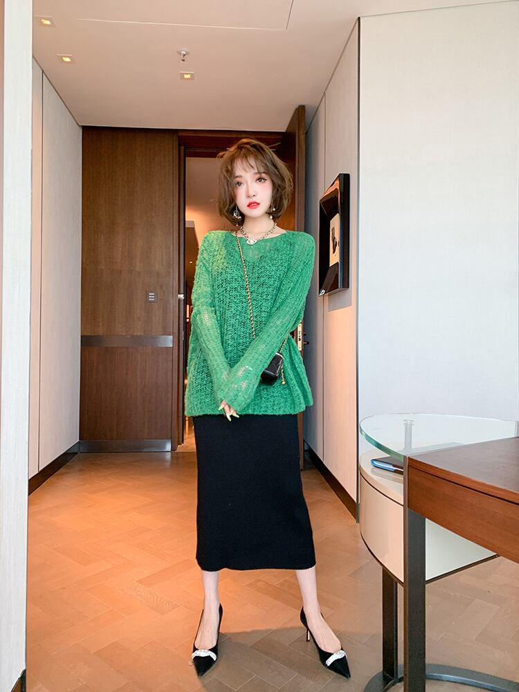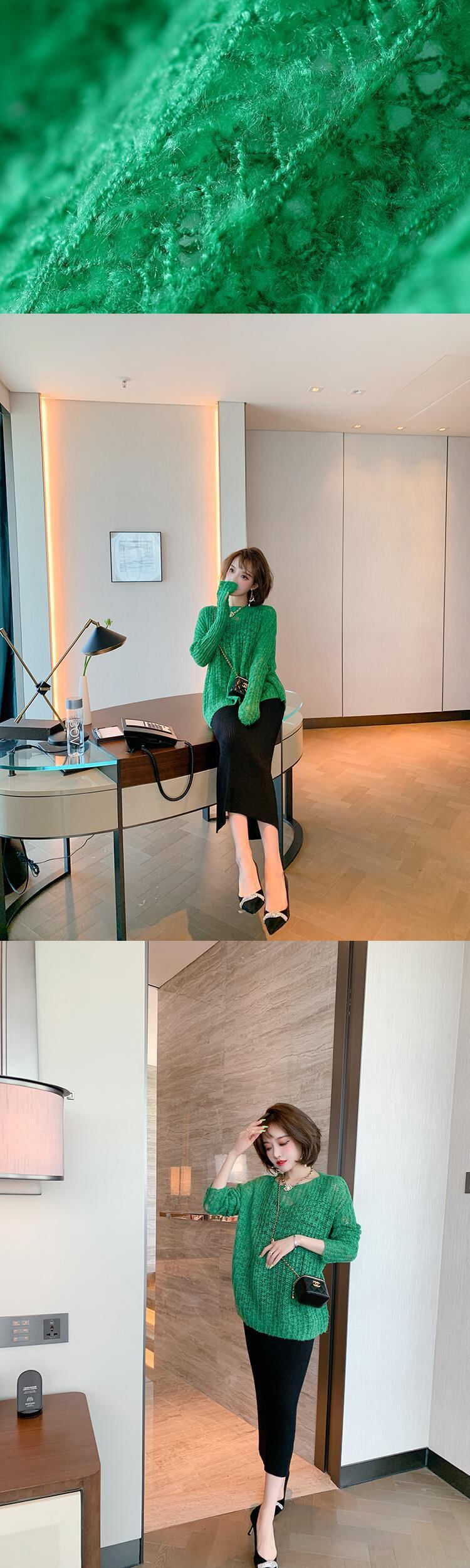 スタイルニットラウンドネックルーズソリッド カラーセーター オータム 秋物 Oネック ソリッドカラー MIUCO99345921428