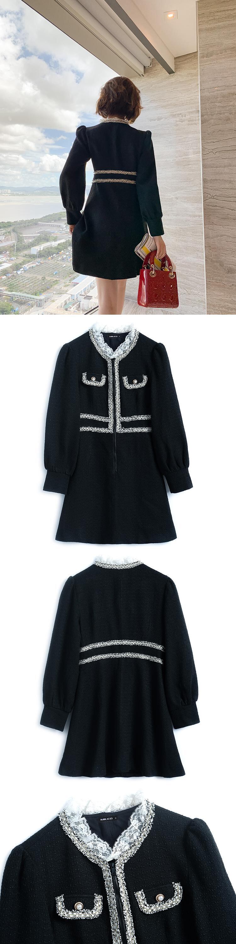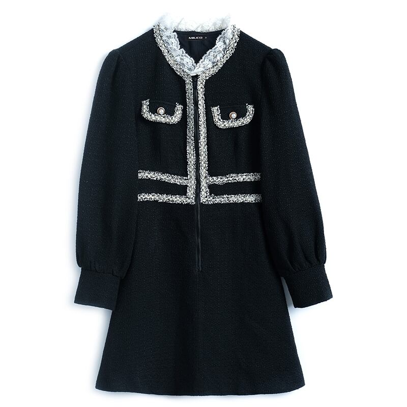 ツィードレースカラーウェストドレス ウィンター 冬物 MIUCO50559079619