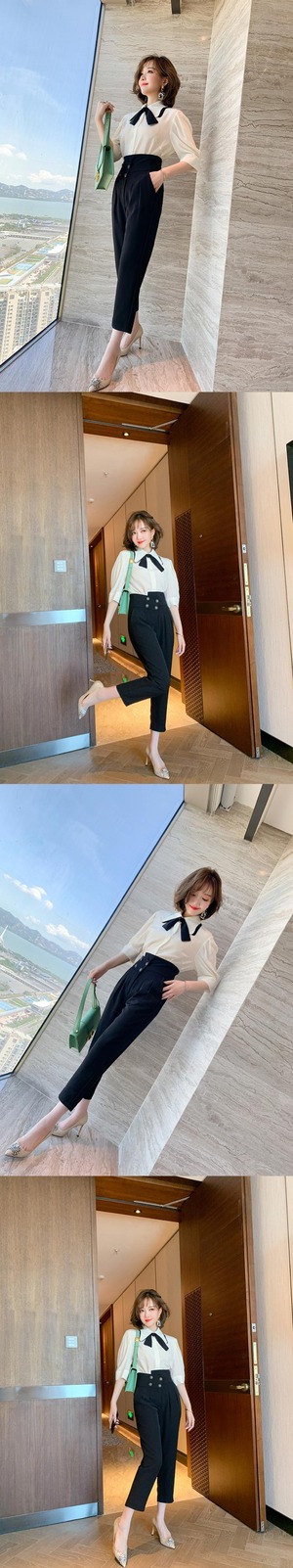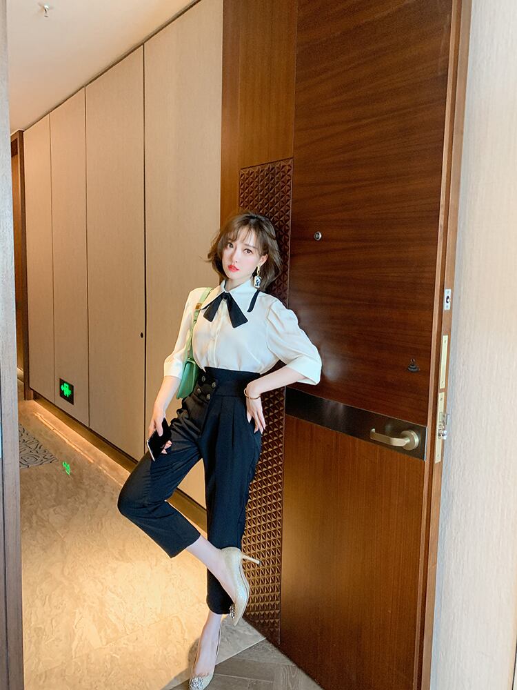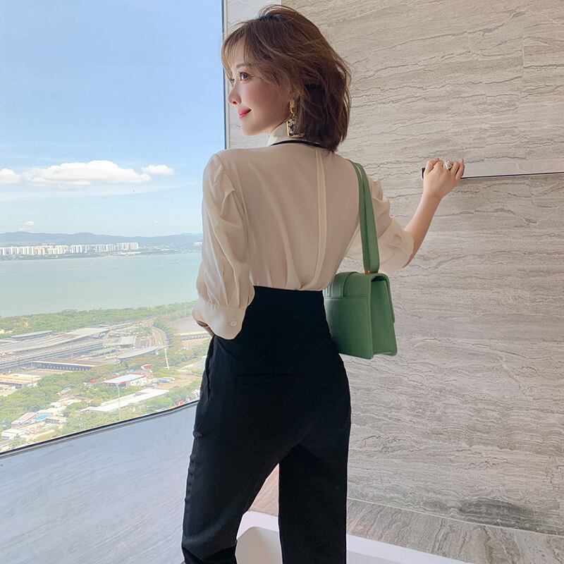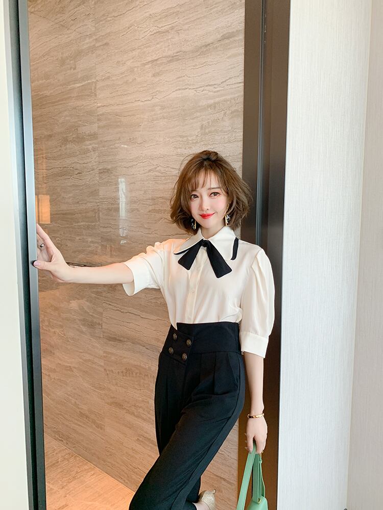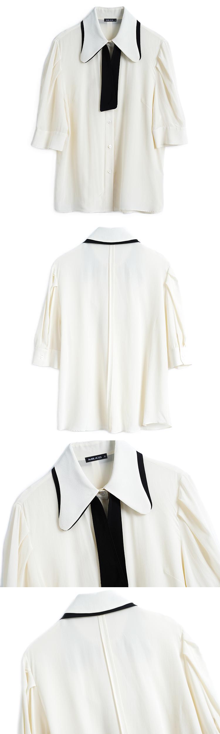 ソリッド カラースリーブシャツ レディースオータム リボン 大人ガーリー スウィート キュート カジュアル 秋物 ソリッドカラー MIUCO86089168246