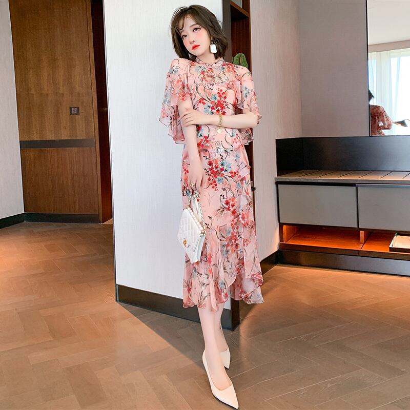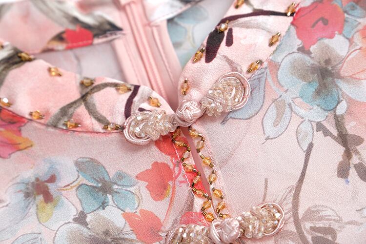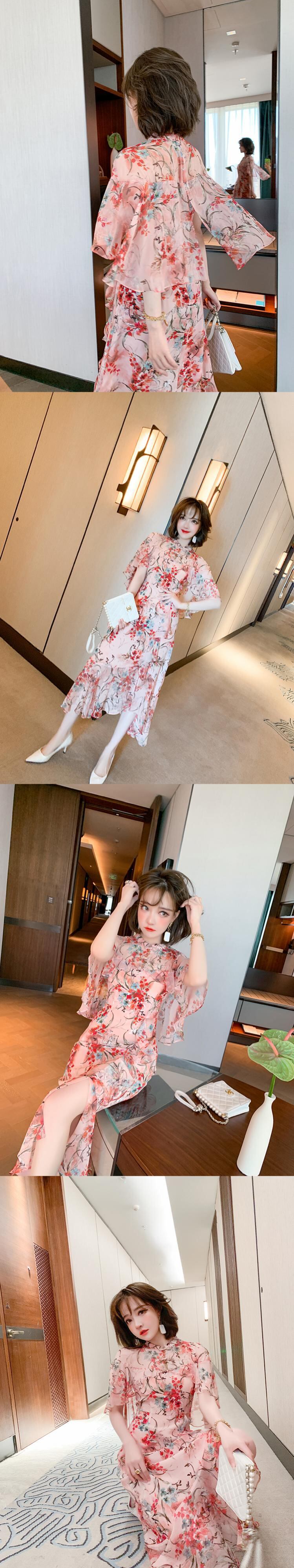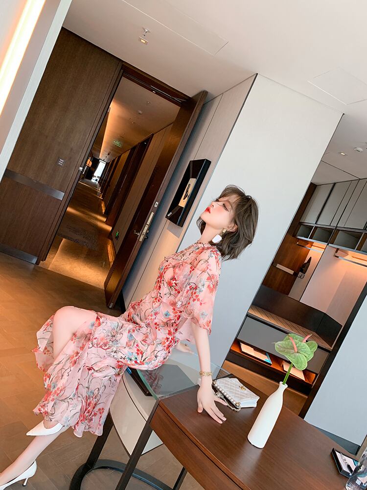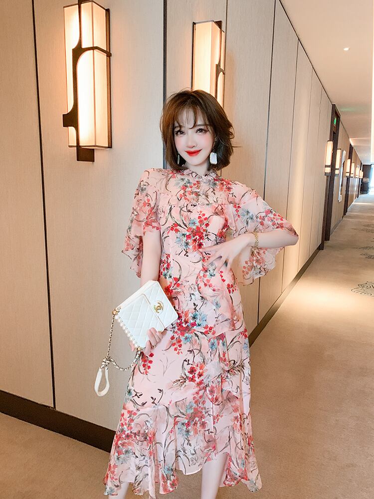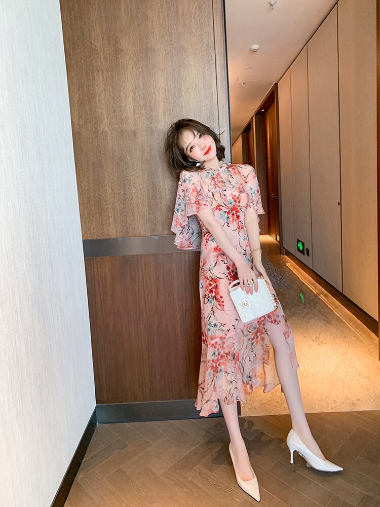 スタンダードプリントカラーバックルレースウェストドレス サマー レトロ 夏物 ステッチ MIUCO45288158420