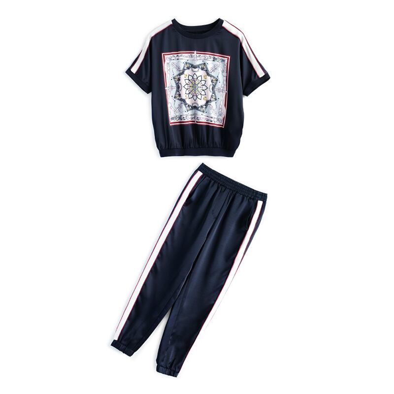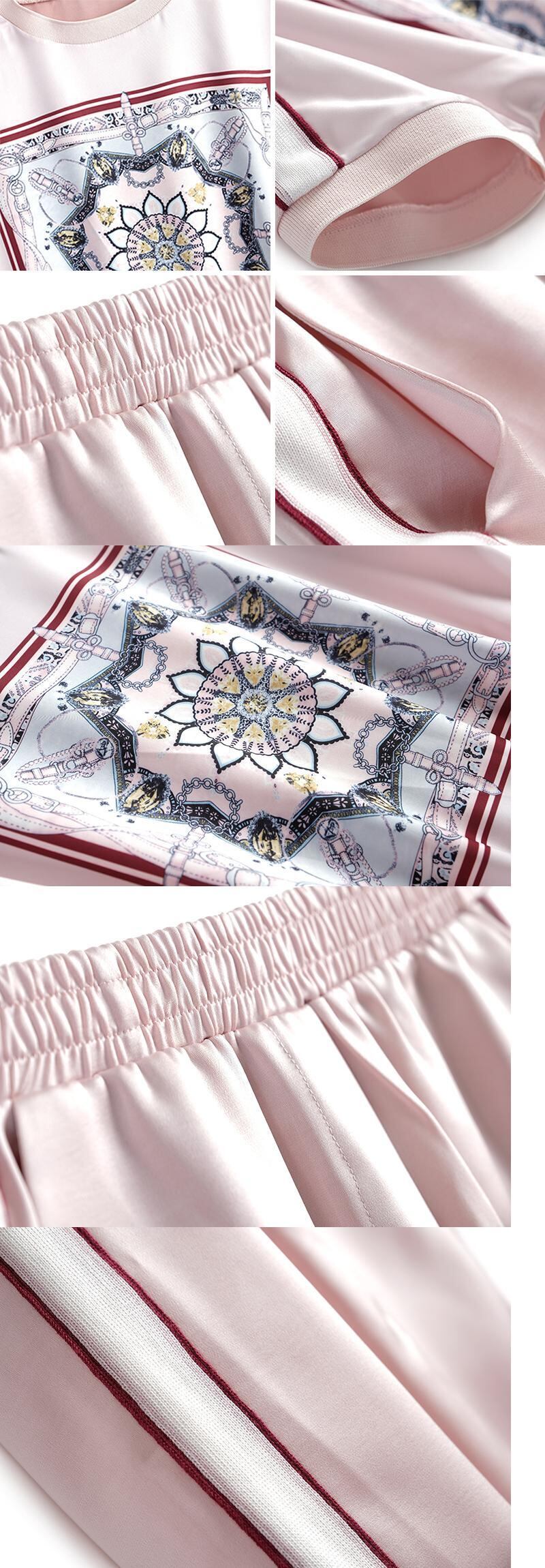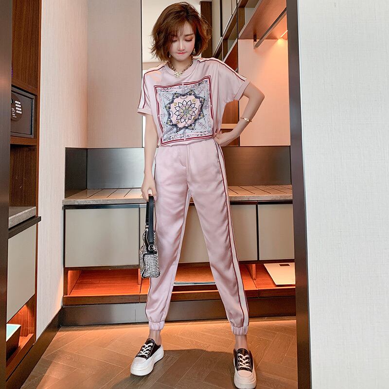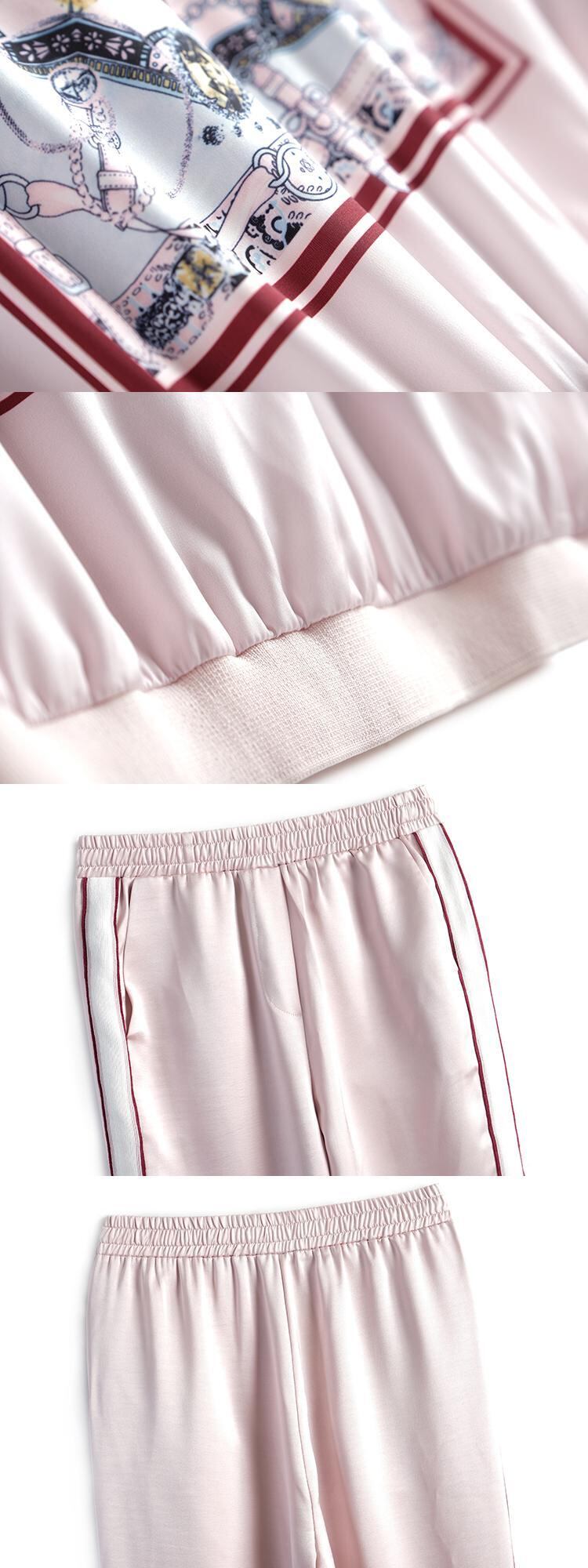 プリントカラーストライプラウンドネックTシャツ カジュアルパンツ スプリング 春物 Oネック MIUCO5269617409