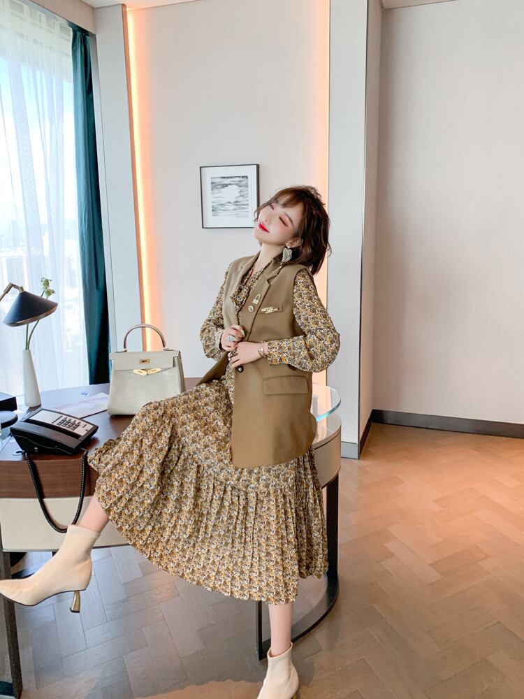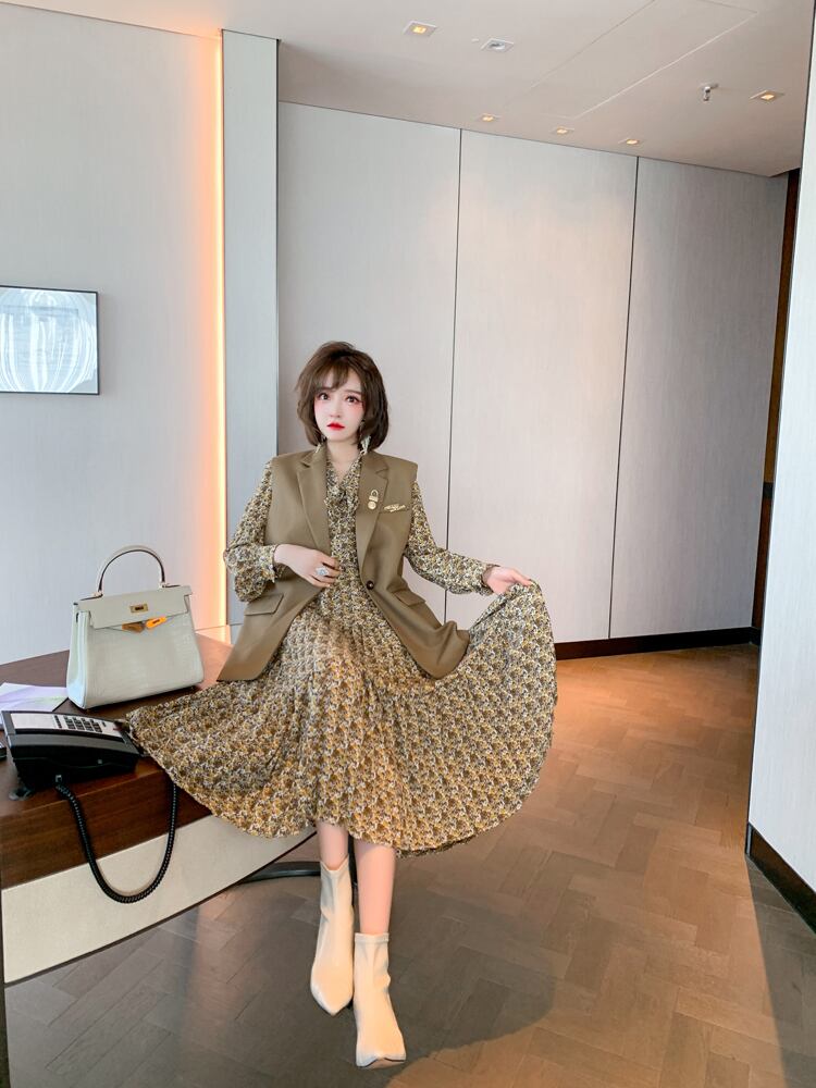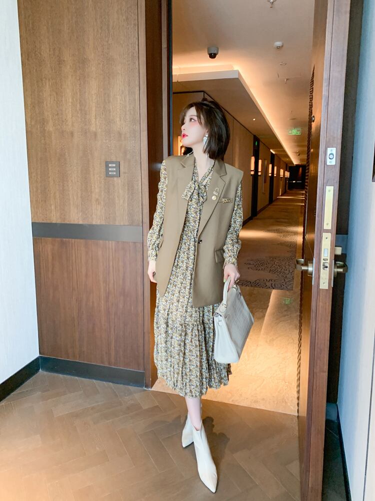 リボンプリント柄ドレス ルーズオータム 秋物 MIUCO92072979636