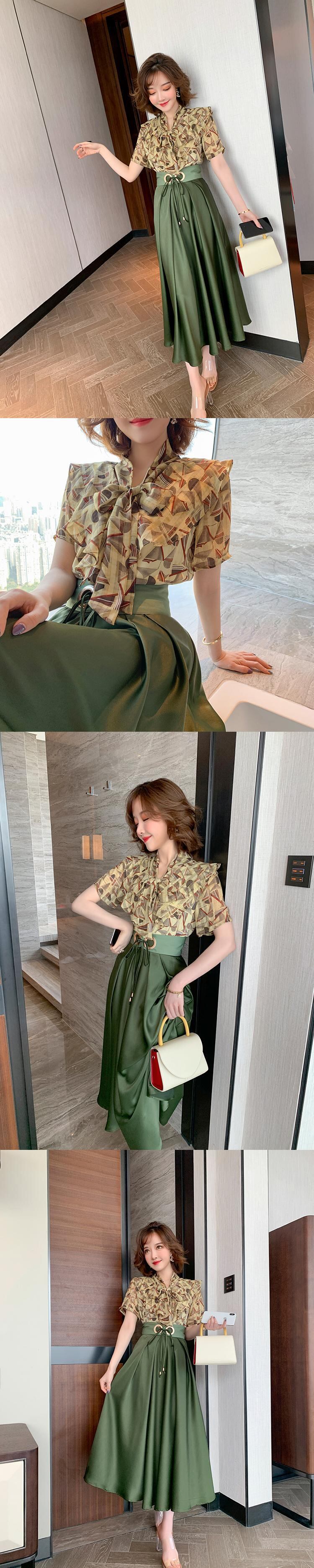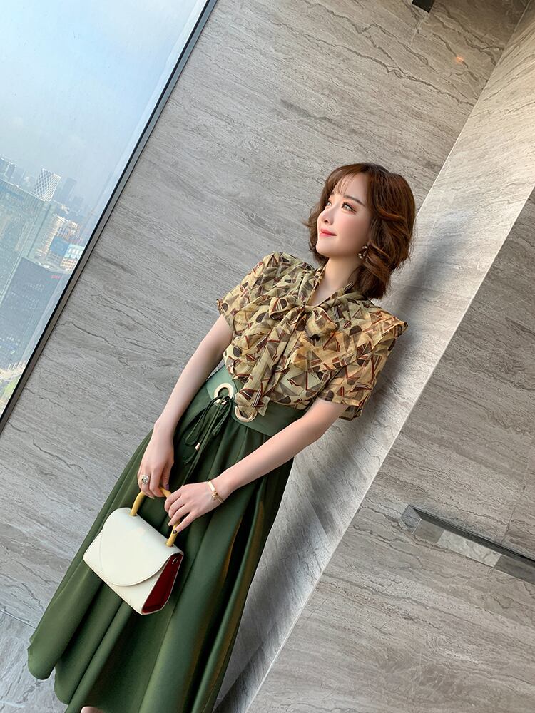 スタンダードプリントリボンシャツ トップス レディースサマー レトロ 夏物 MIUCO12725202803