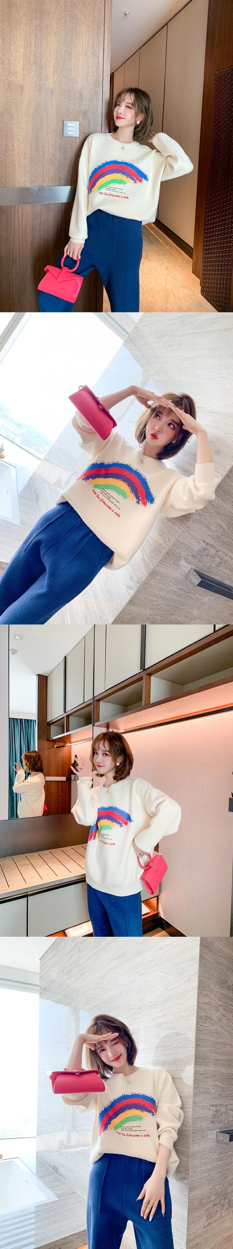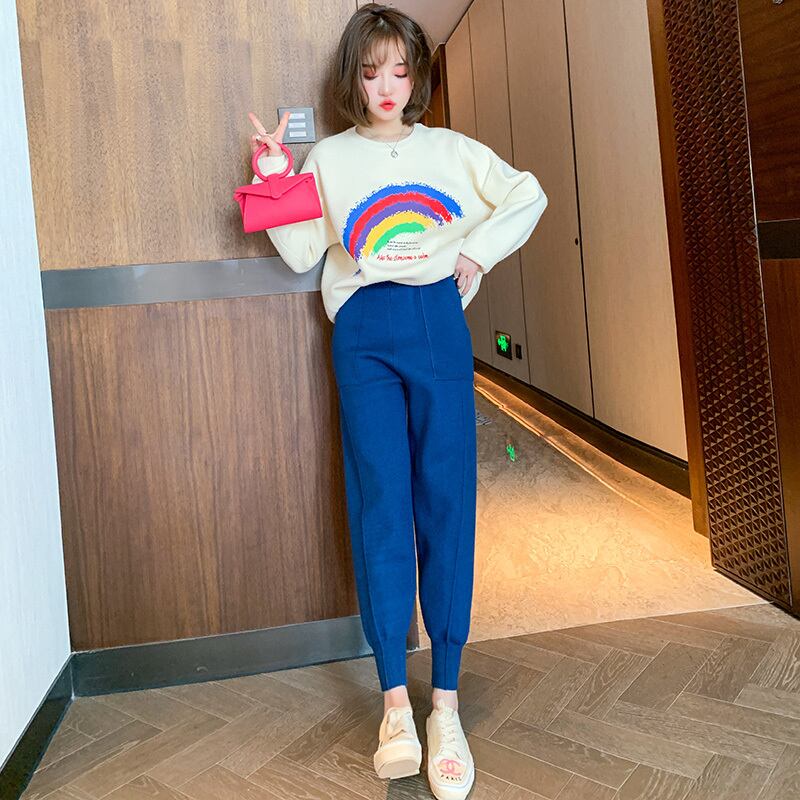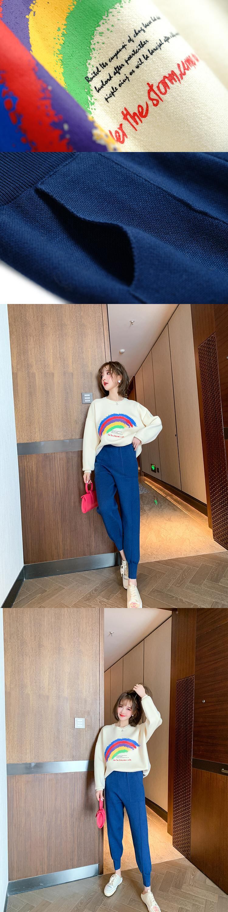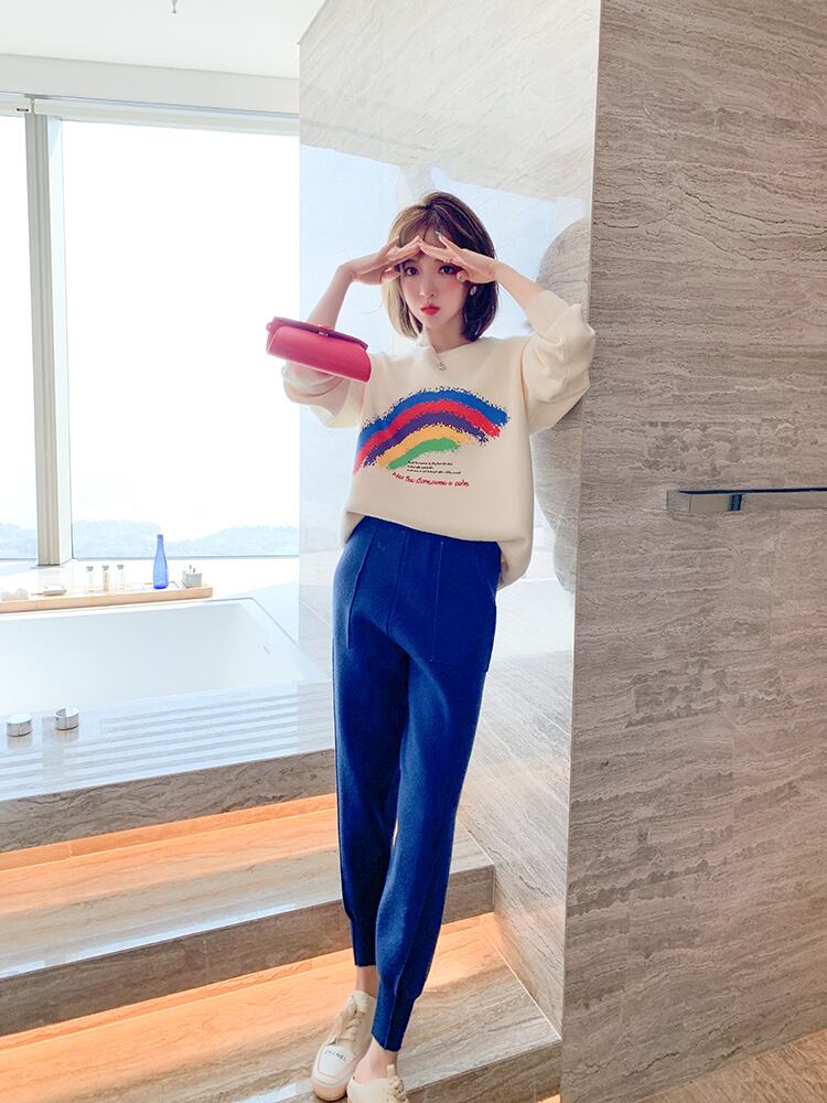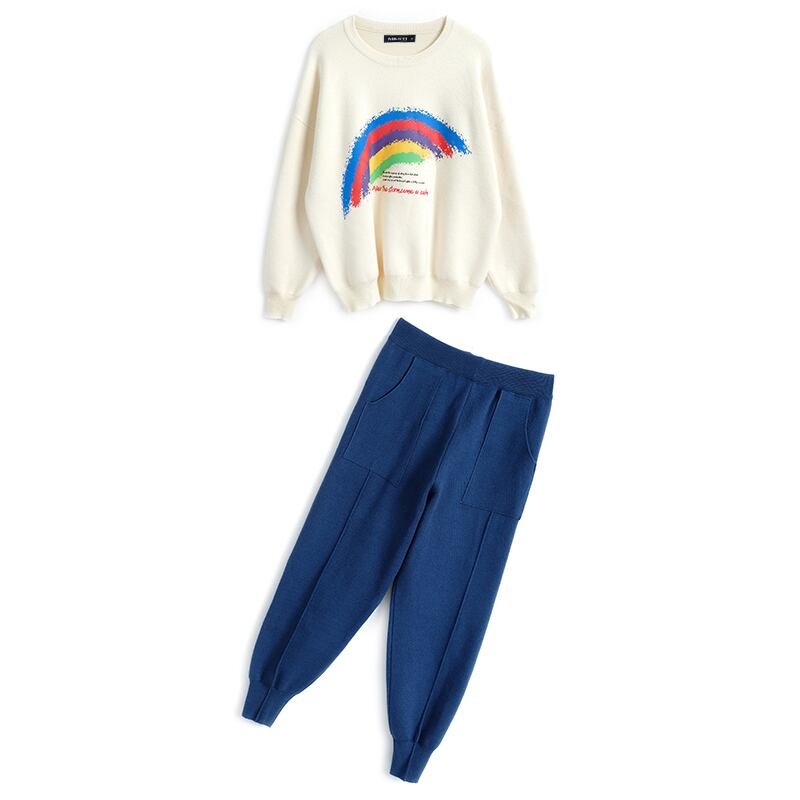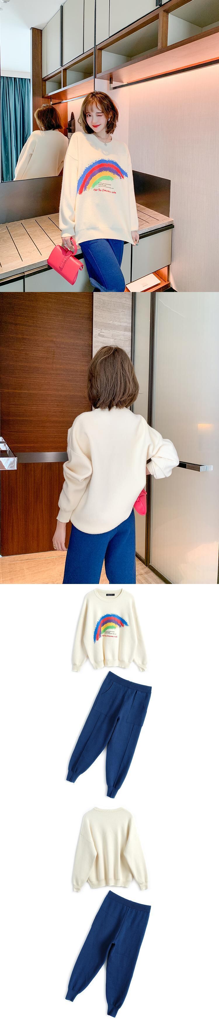 プリント柄セーター ウェスト薄手レギンス パンツ セット ウィンター 冬物 MIUCO47696292159