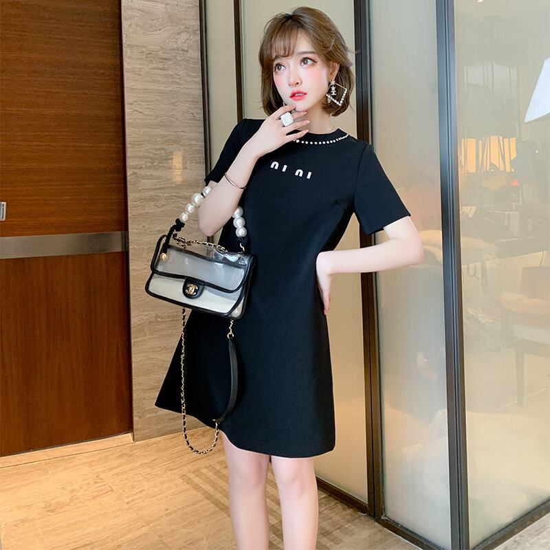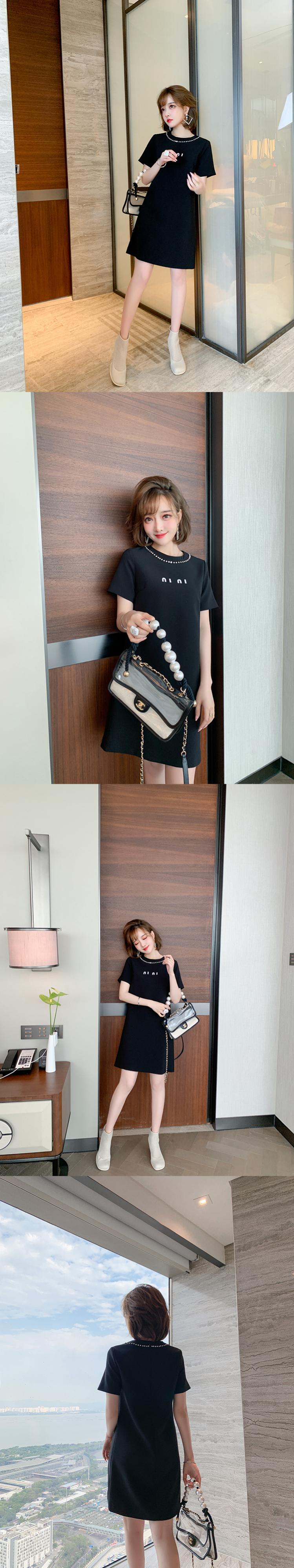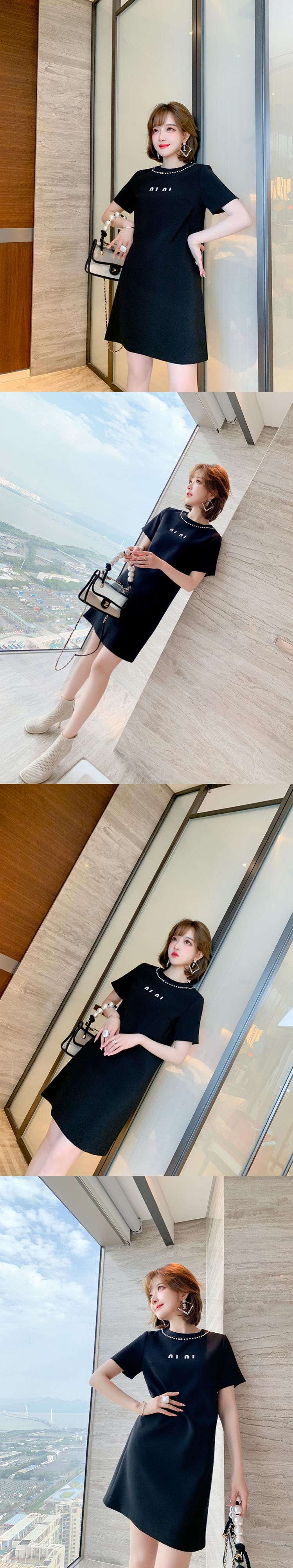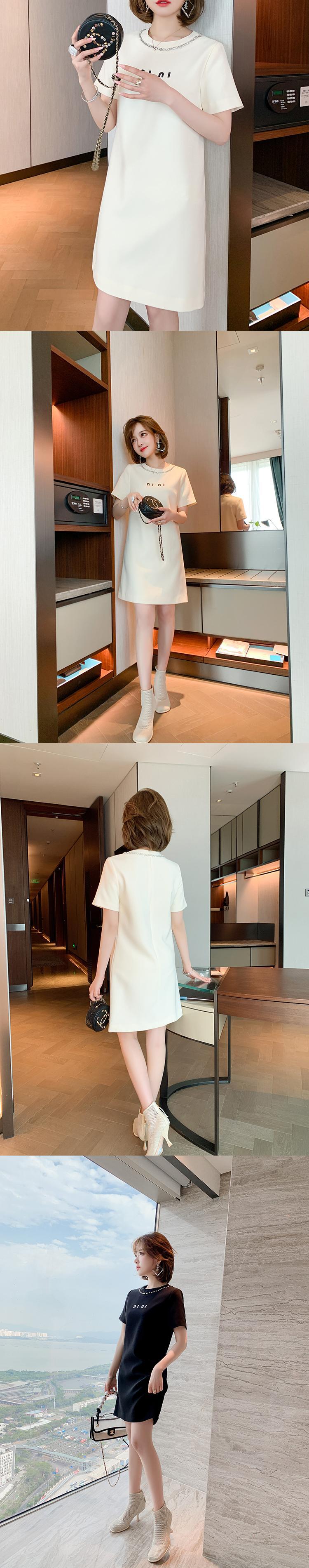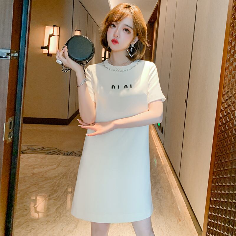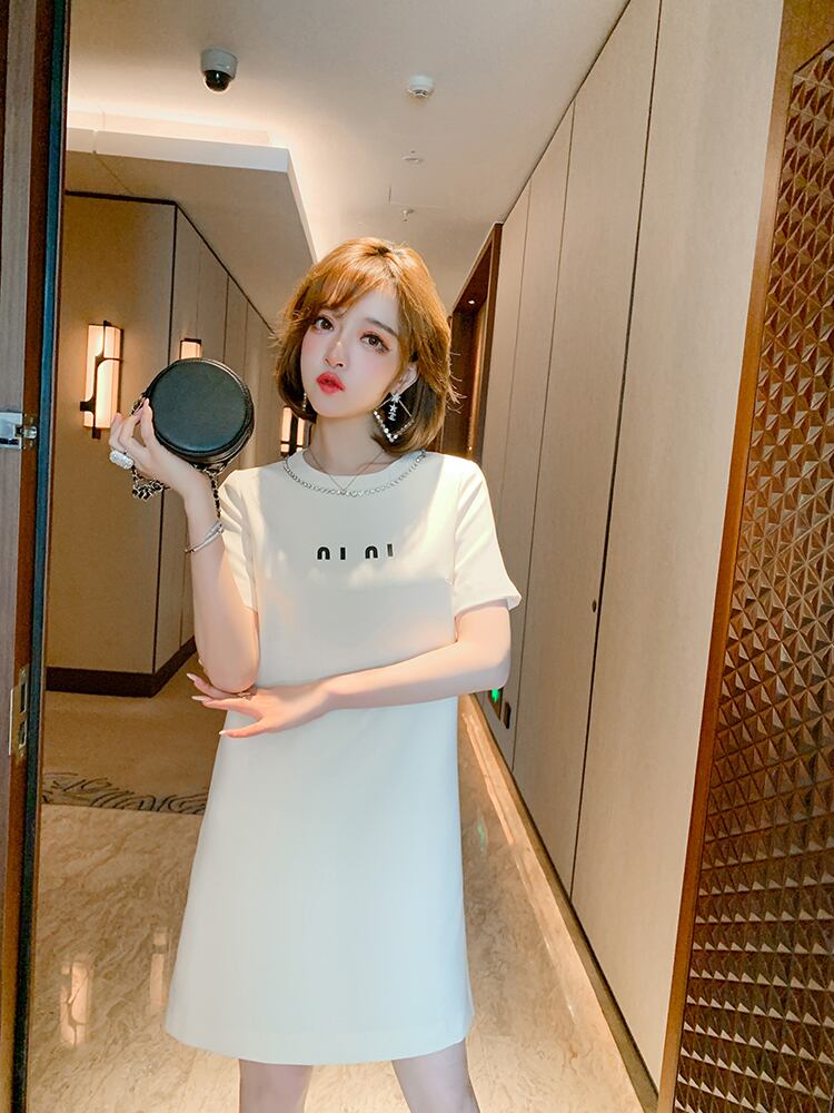 ラウンドネックプリント柄半袖スリーブカラールーズTシャツ ドレス サマー ショート ハーフスリーブ 夏物 Oネック ピュア MIUCO66243791656
