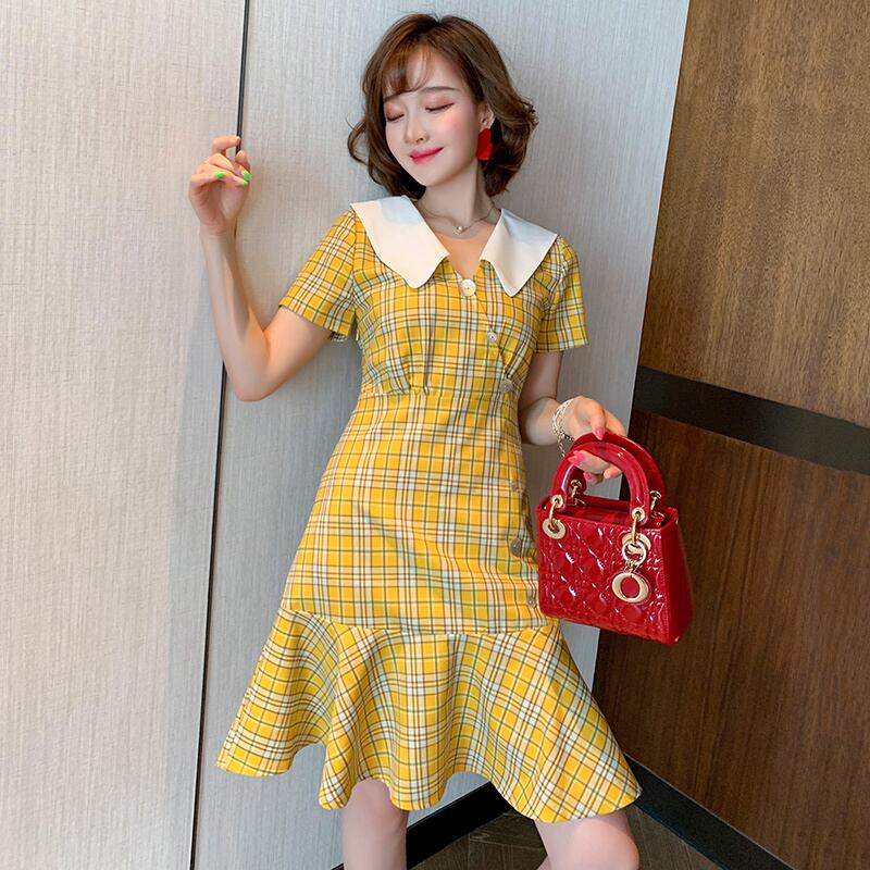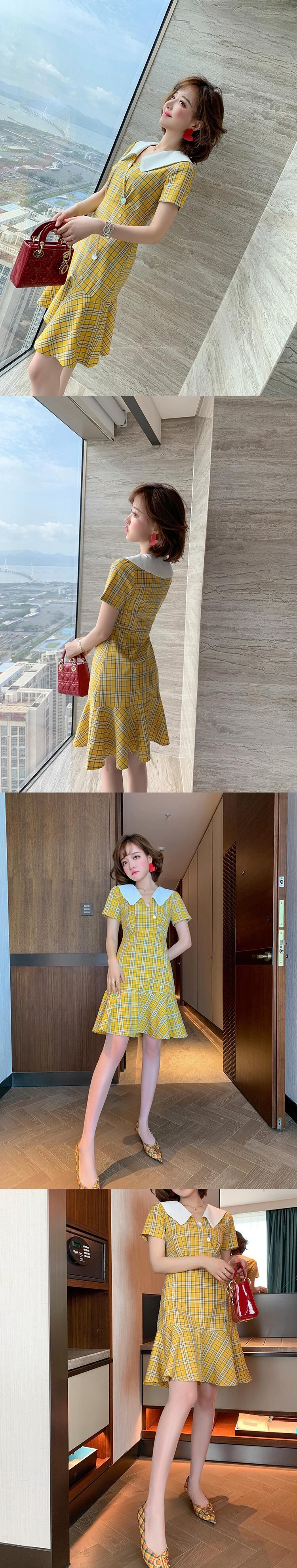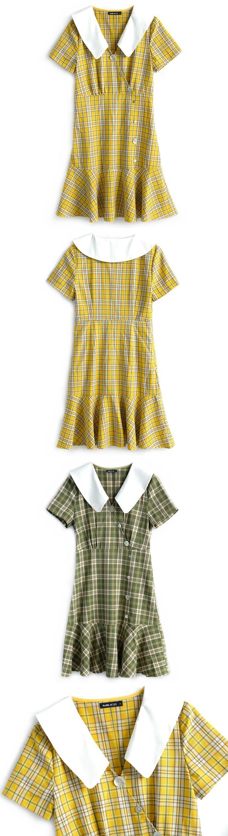 スタンダードパターンプリント柄カラーウェストラッフルドレス レトロ MIUCO75295290048