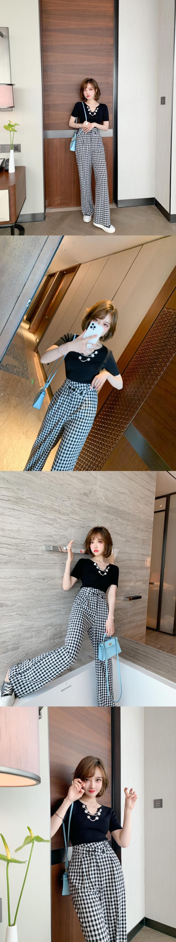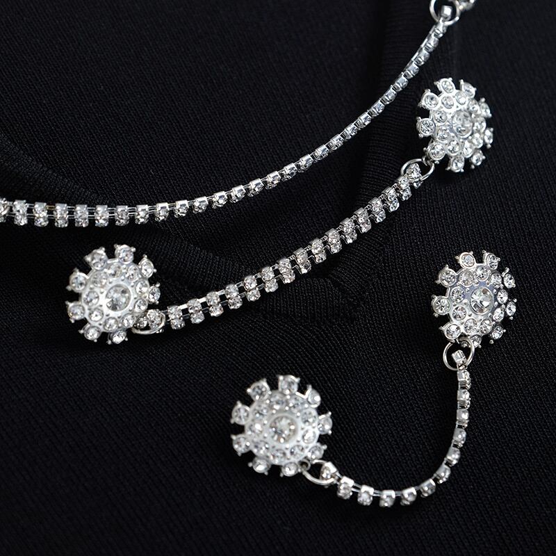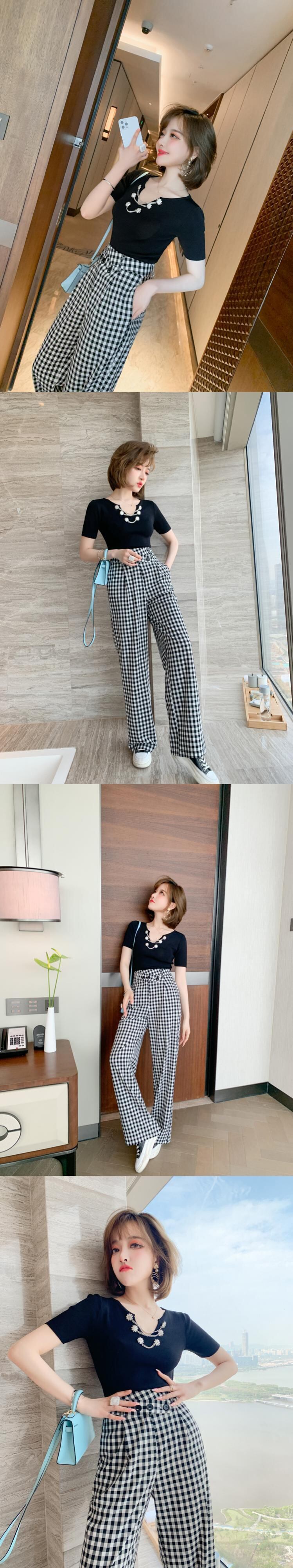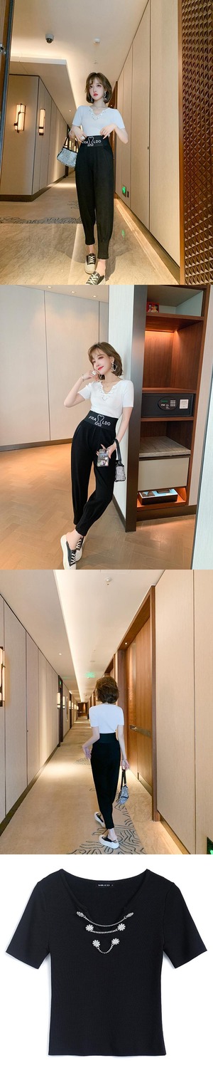 ラウンドネックチェーン カラーボタンスリムニットセーター Tシャツ サマースタイル 夏物 Oネック MIUCO42924152207