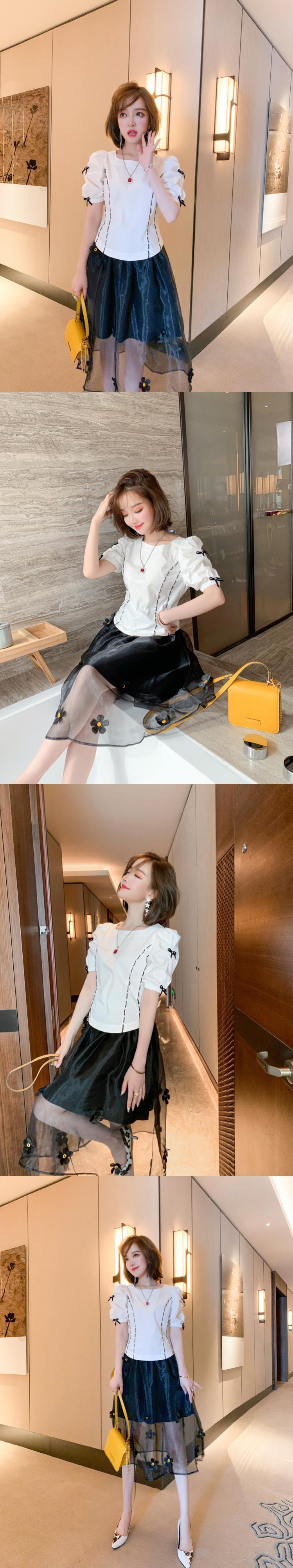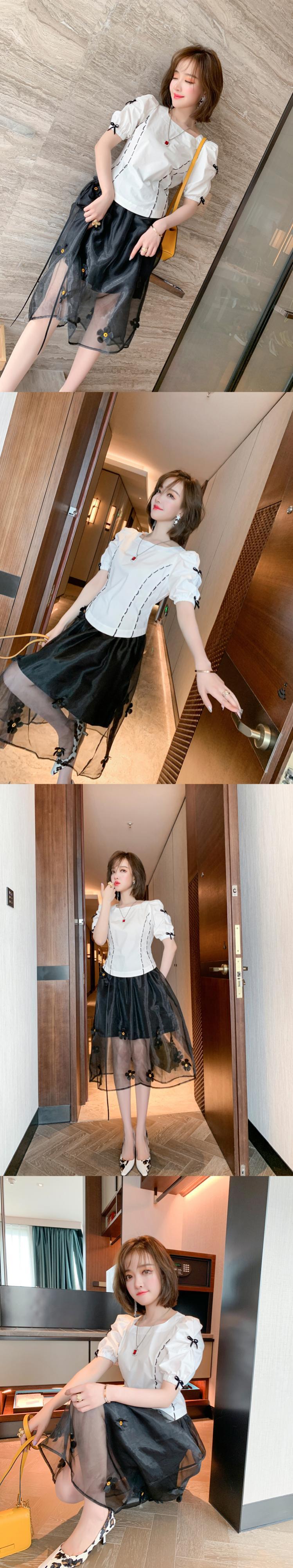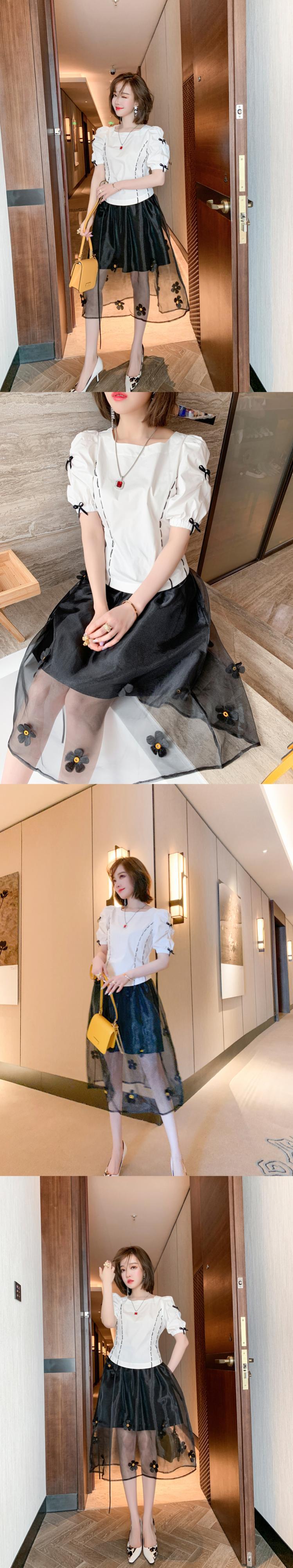 ハートFlowerデザイン ハイウェストウェスト薄手Aラインスカート サマー 夏物 フラワーデザイン MIUCO76645748890