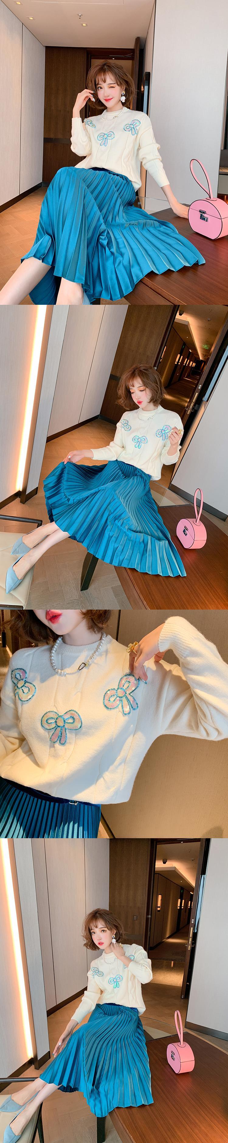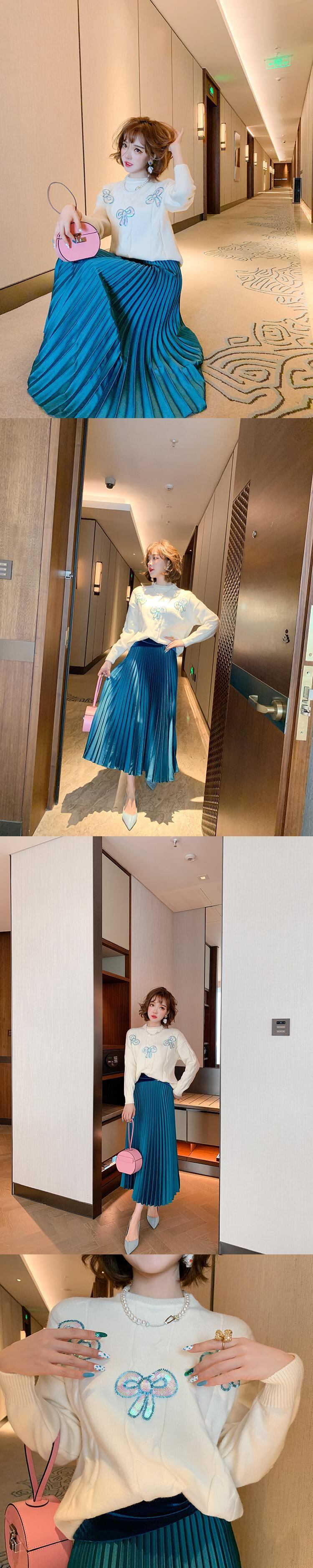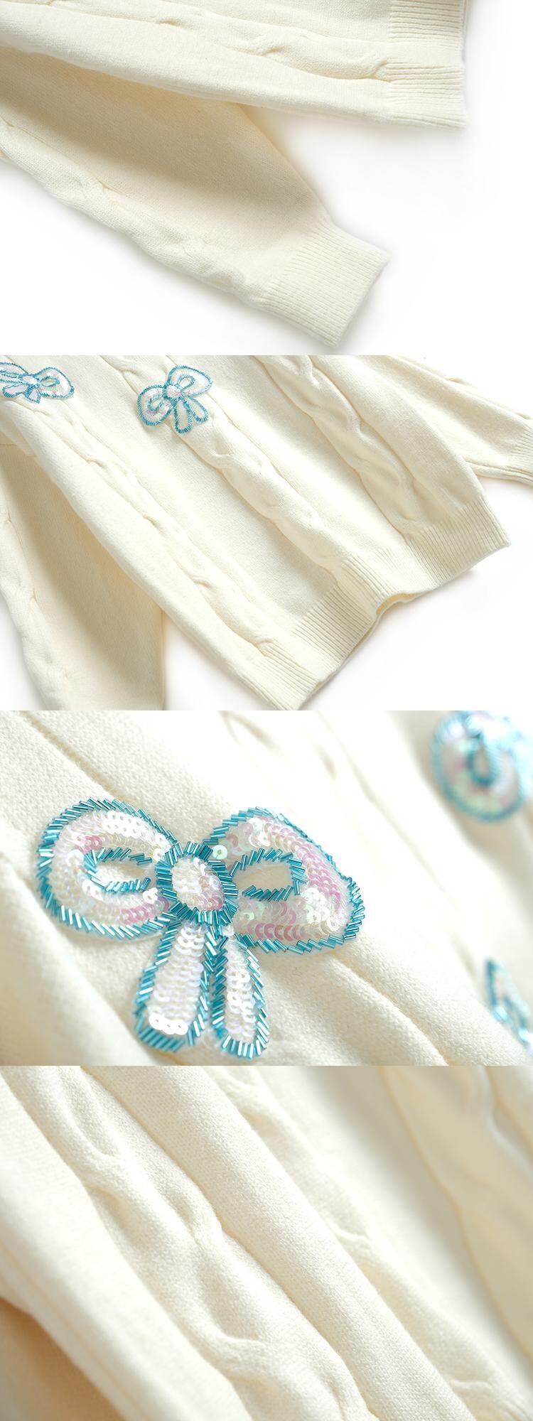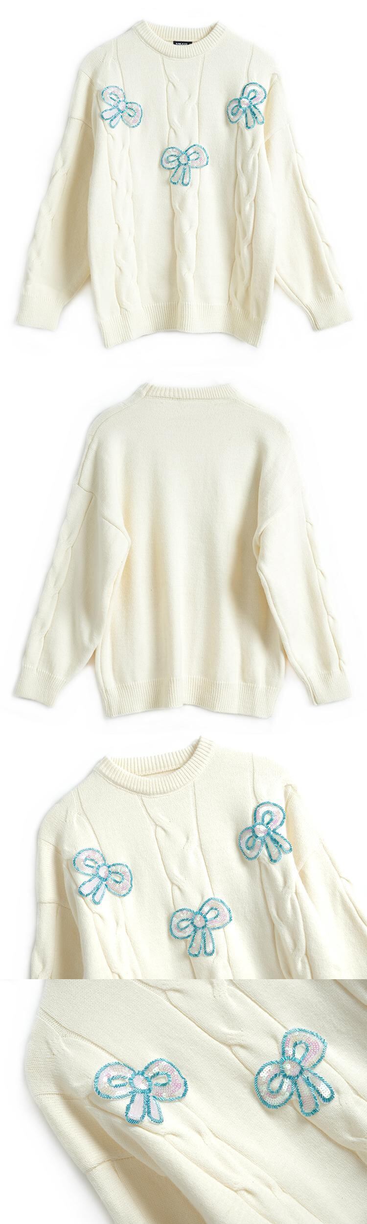 スパンコールルーズ薄手ラウンドネックニットセーター リボン オータム 秋物 ウィンター 冬物 Oネック MIUCO75955816054