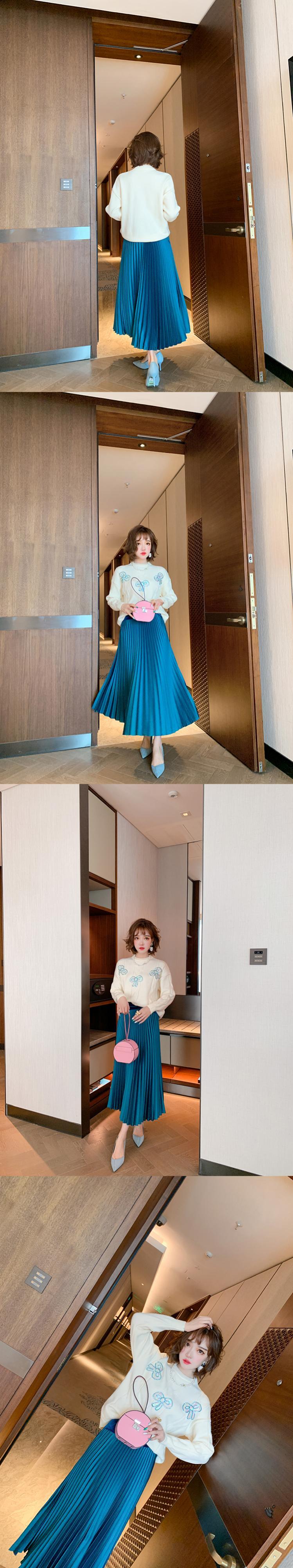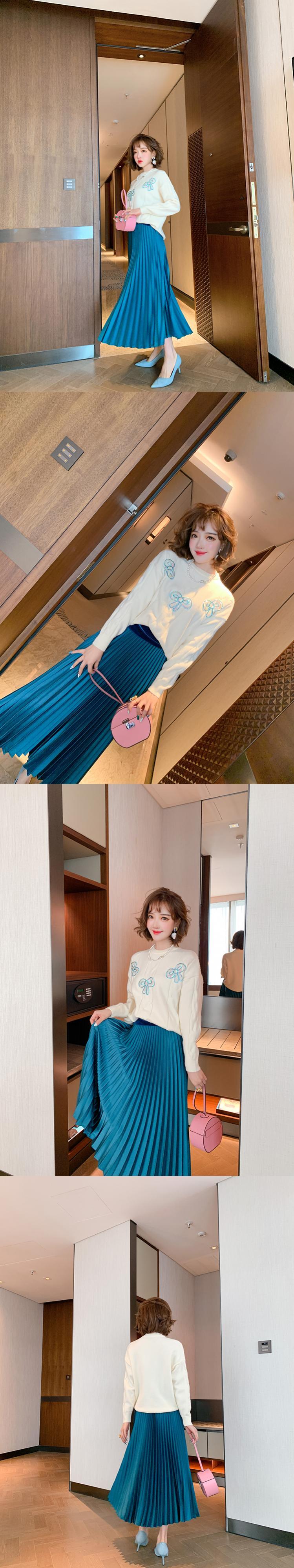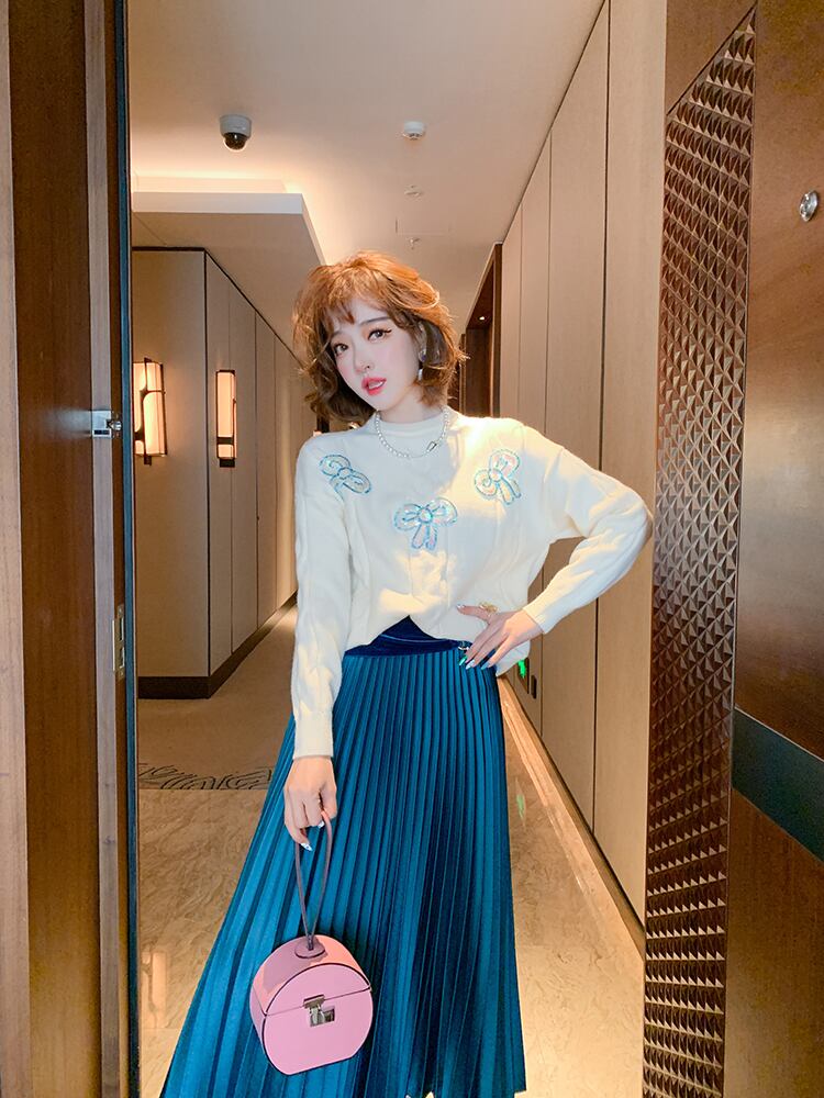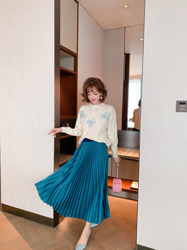 スパンコールルーズ薄手ラウンドネックニットセーター リボン オータム 秋物 ウィンター 冬物 Oネック MIUCO75955816054