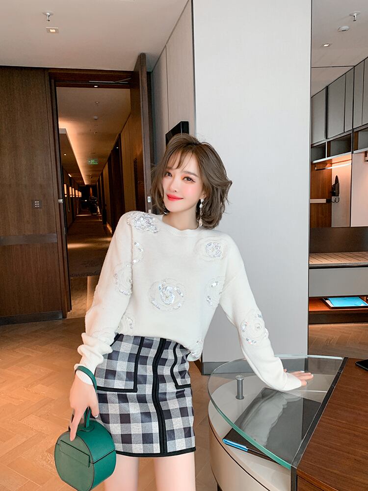 ラウンドネックスパンコールジャカードニットセーター ウィンター 冬物 Oネック MIUCO3655798769