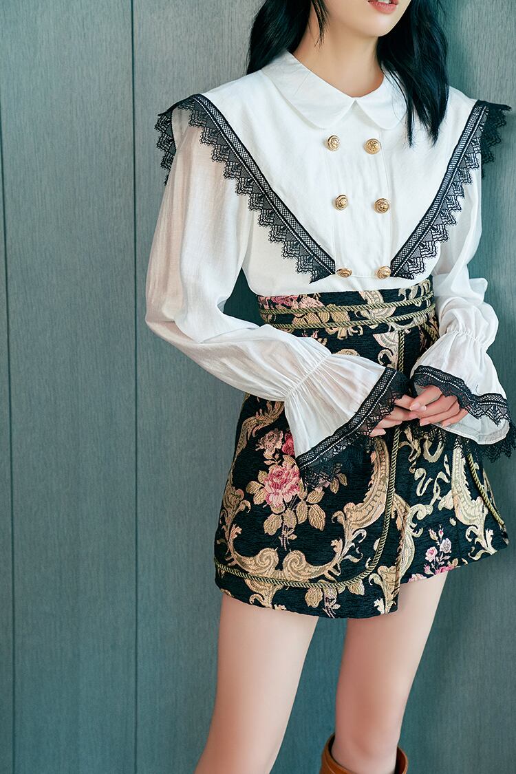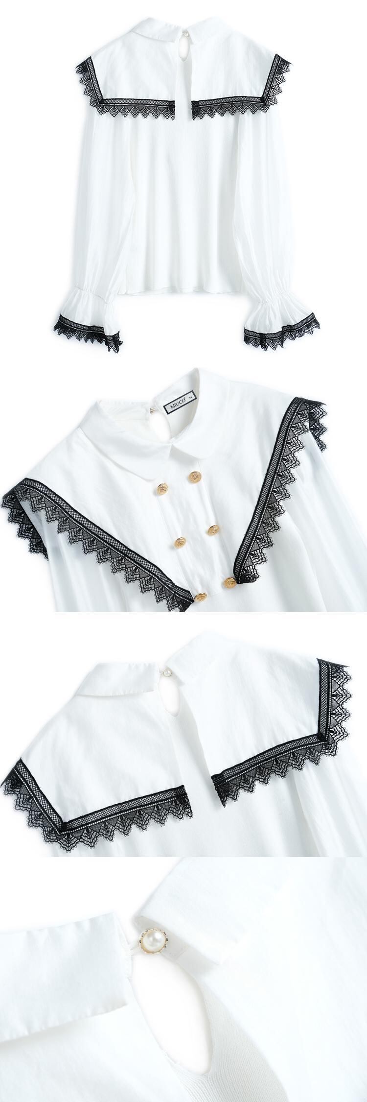 カラーレーススリーブシャツ レッド 大人ガーリー スウィート キュート カジュアル ピュア ステッチ MIUCO63829618300
