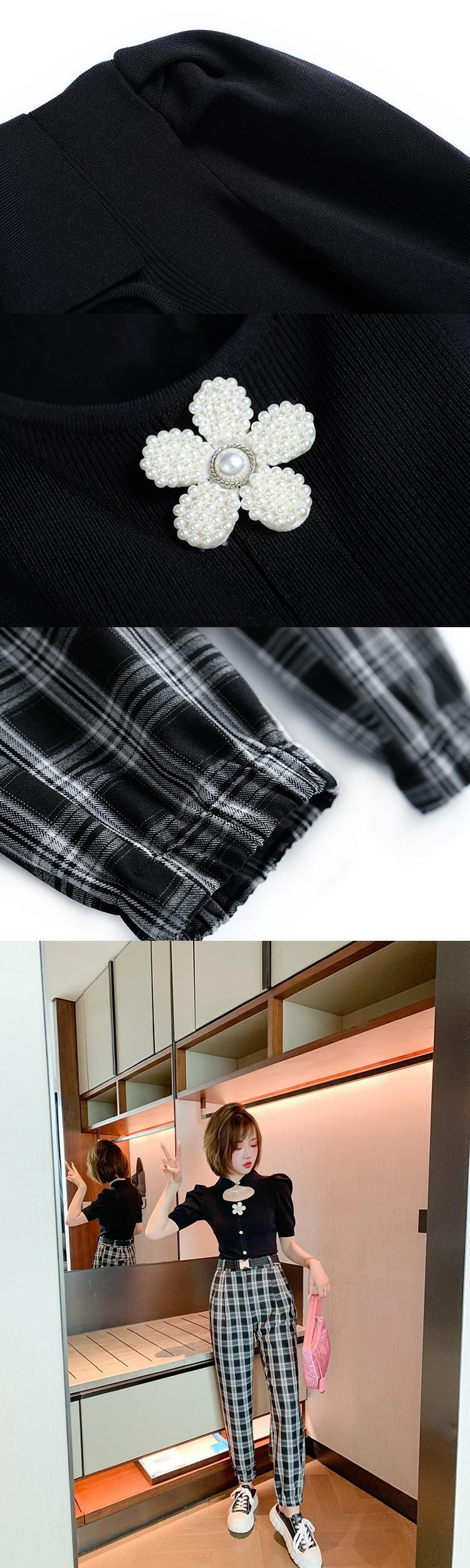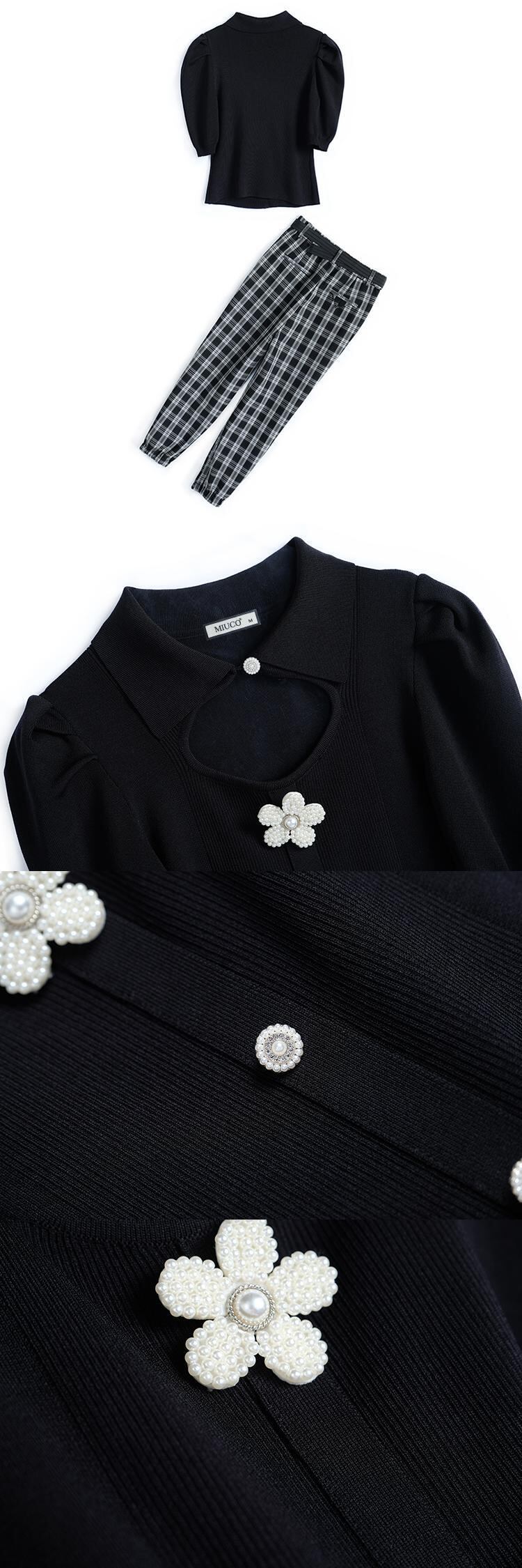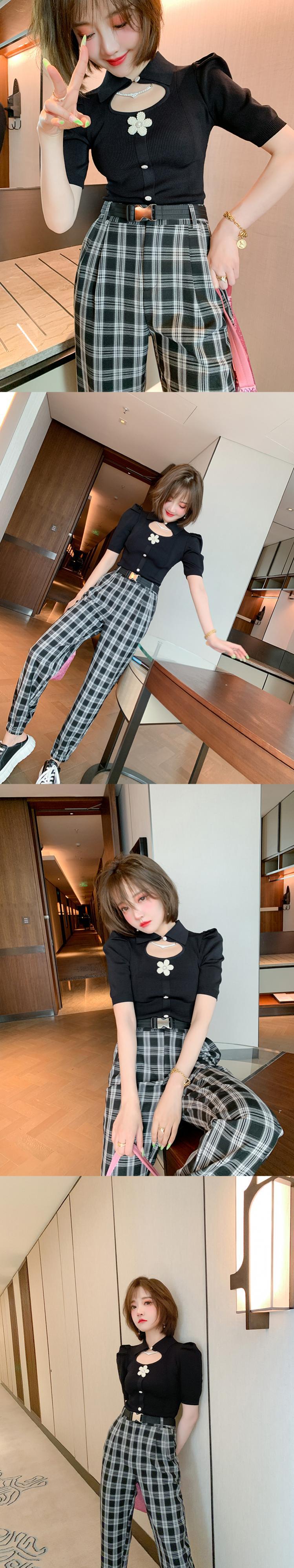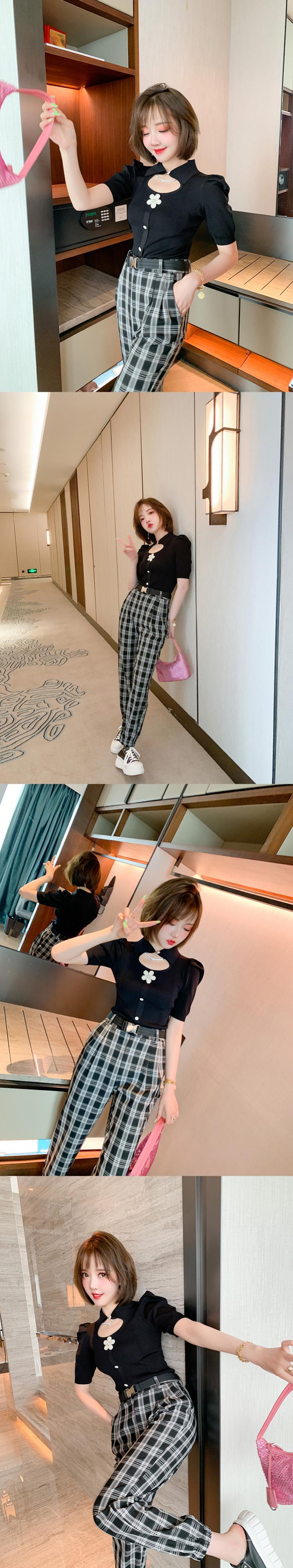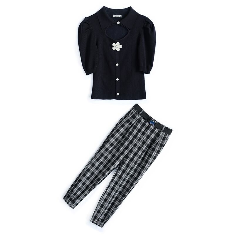 スリーブトップス スタンダード格子柄パンツ セット レトロ MIUCO15845395418