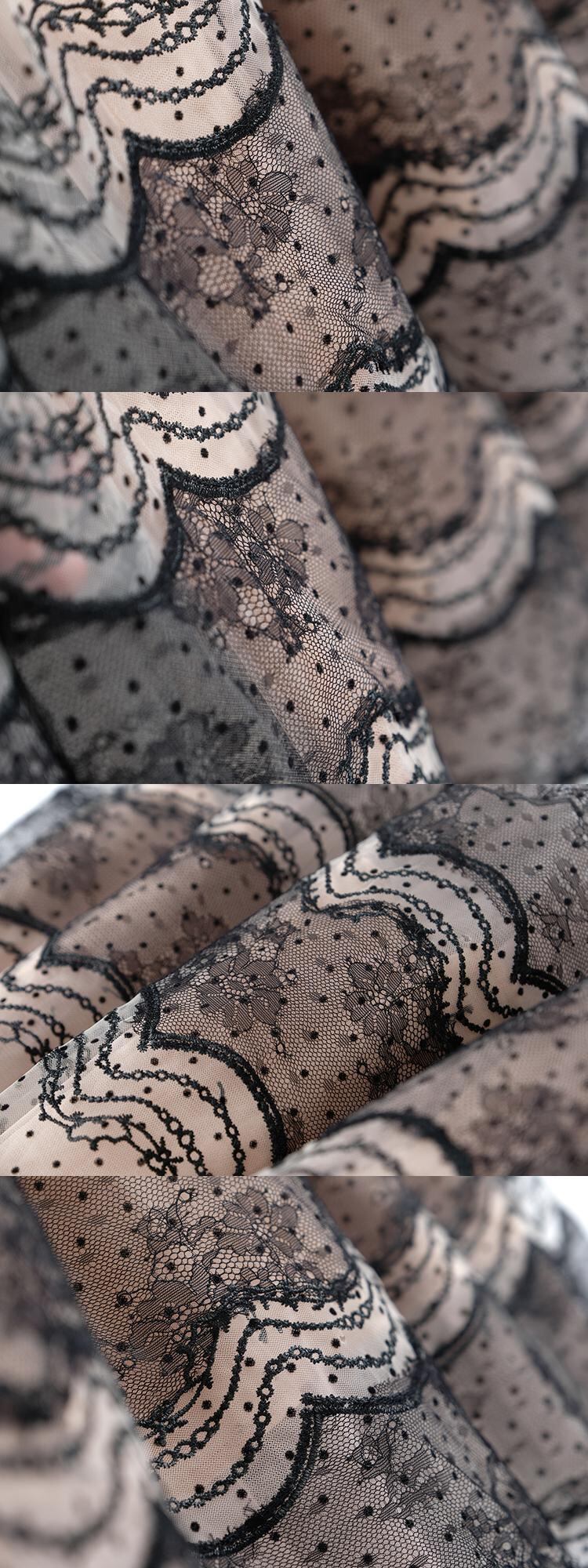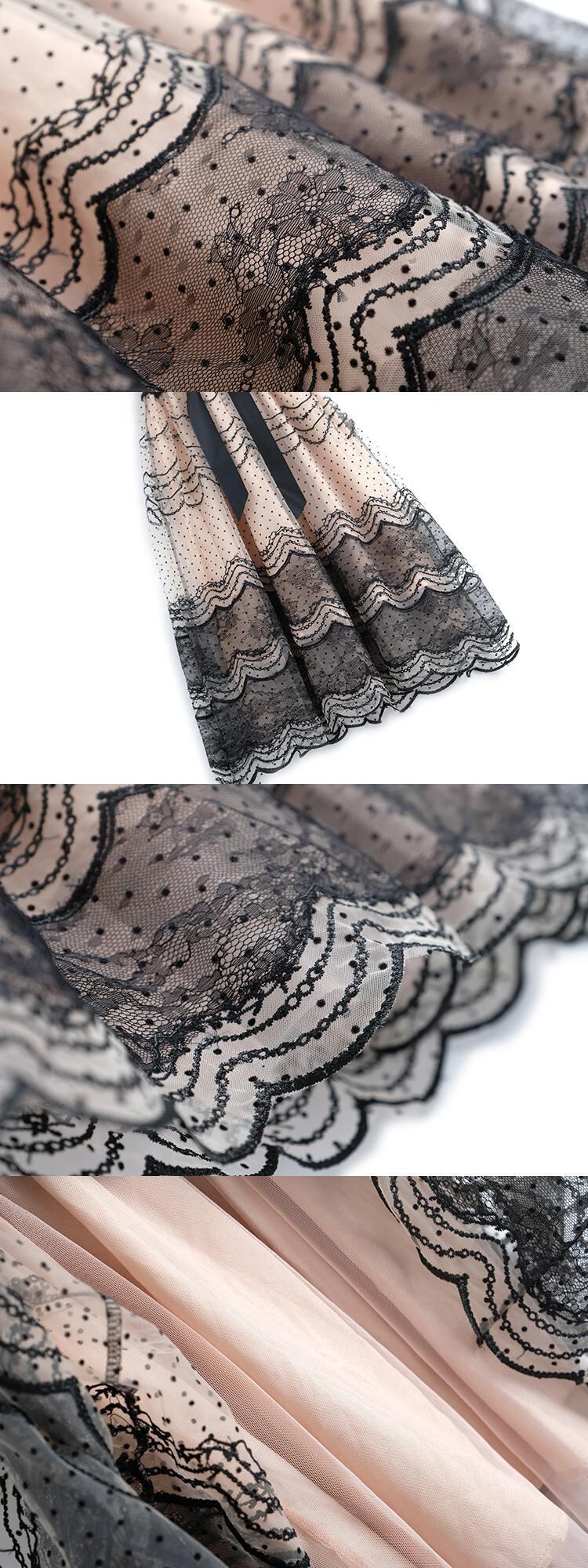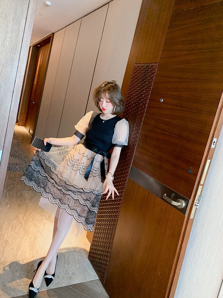 ニット 水玉メッシュウェストレーススカート ドレス サマー 夏物 ステッチ MIUCO75068597564