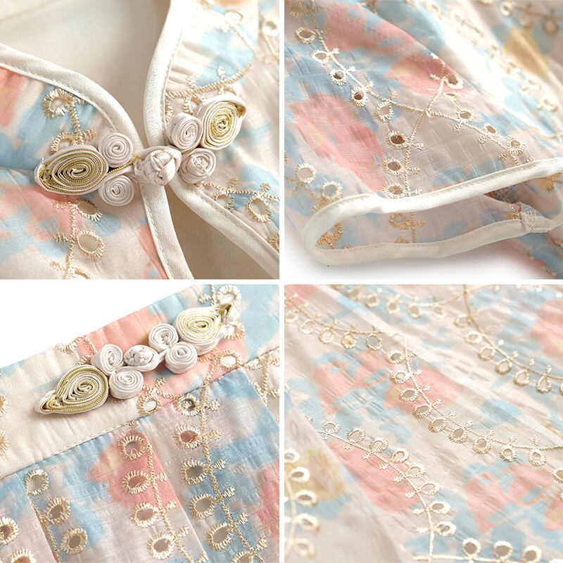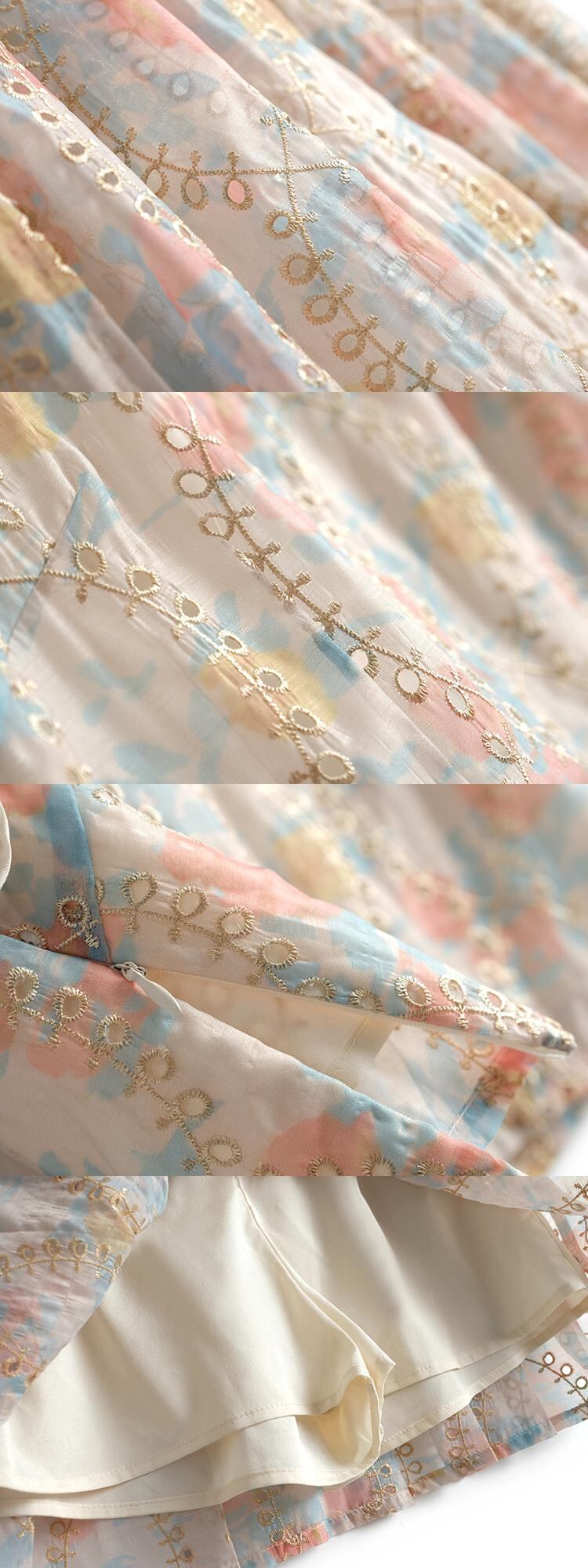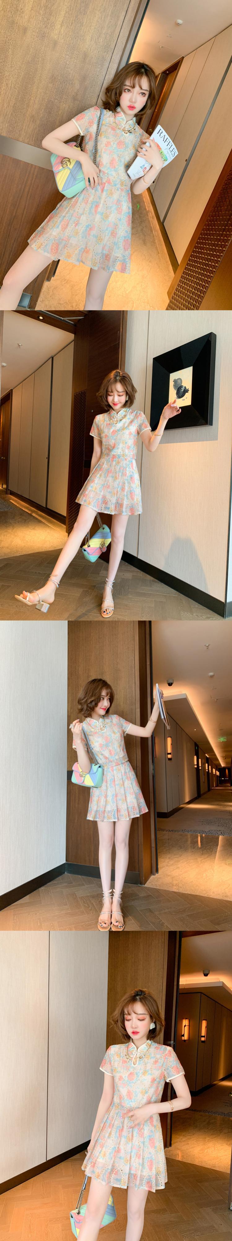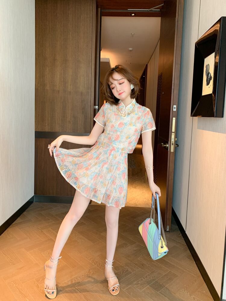 自然派スタイルプリントボタン刺繍ショートトップス プリーツスカート MIUCO44015212801