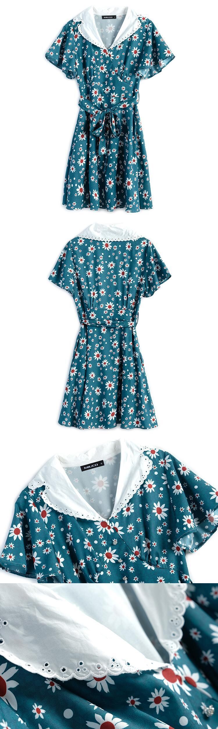 フローラル刺繍ベルト ドレス ハーネス 花柄 MIUCO73939979528