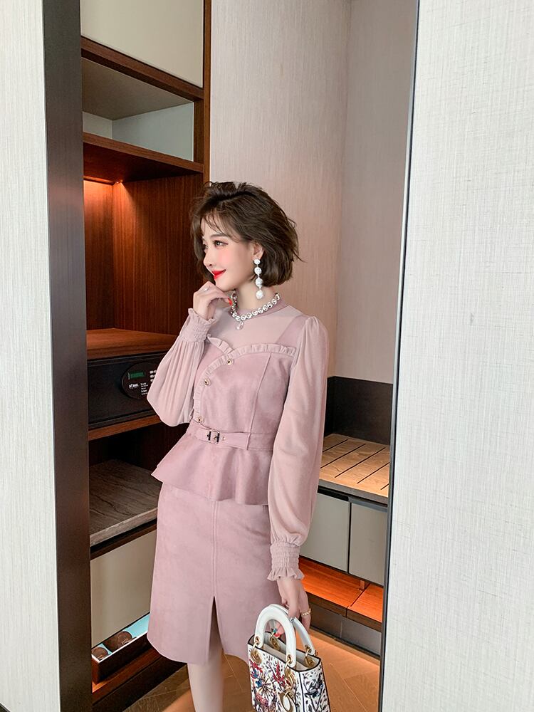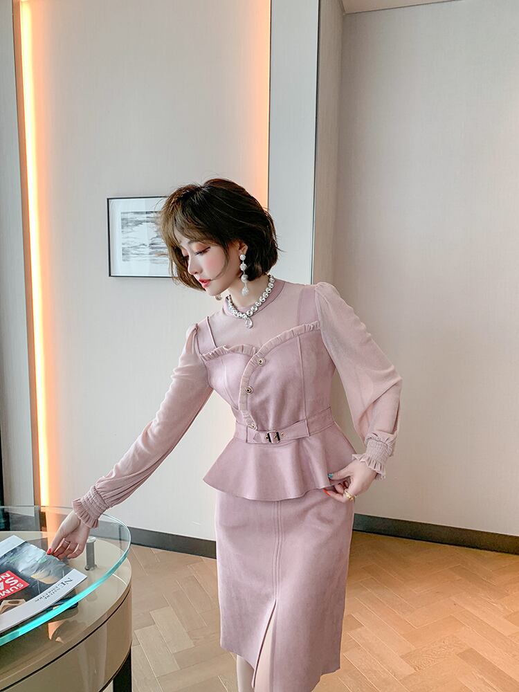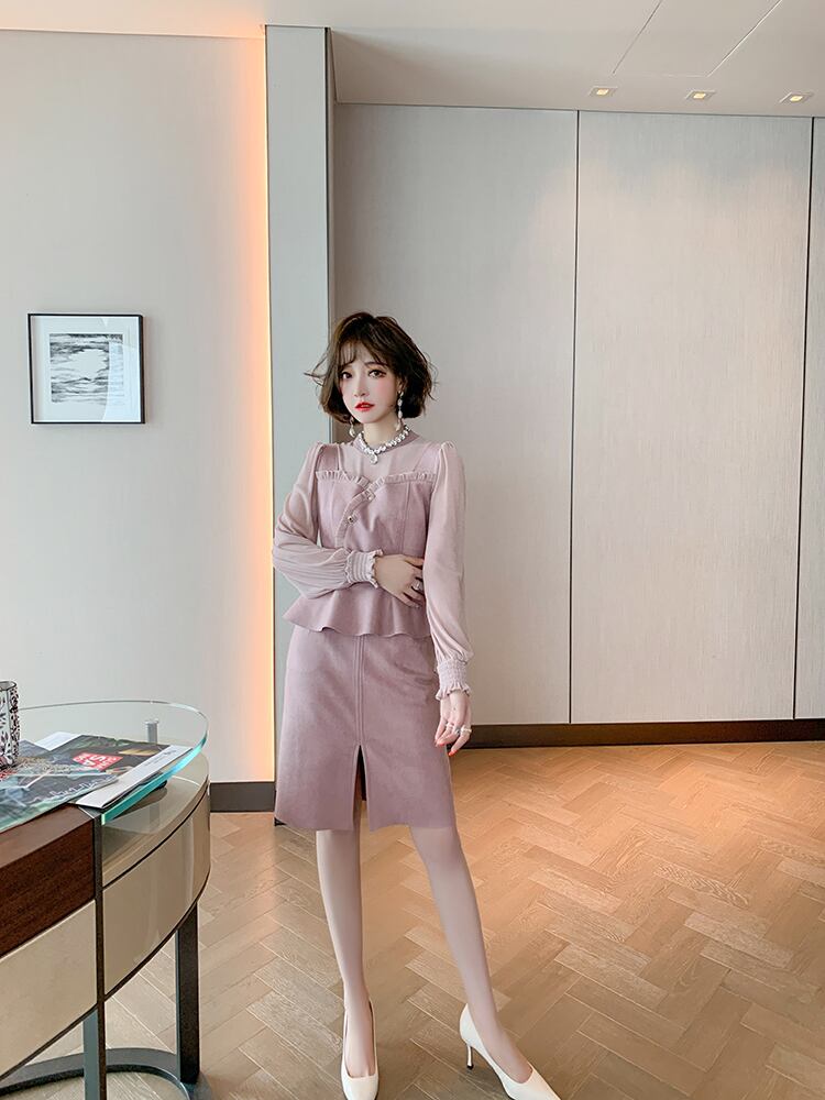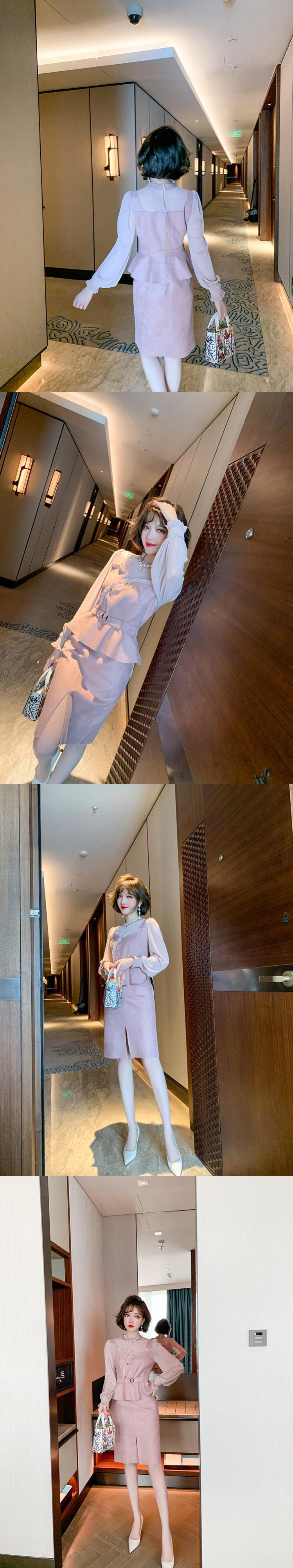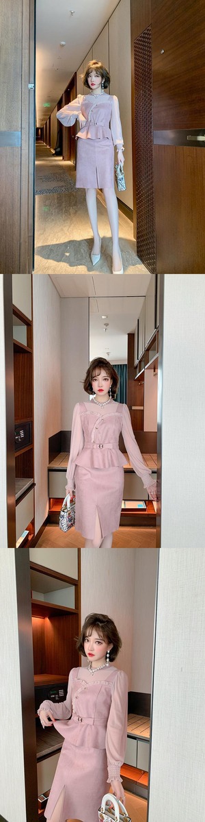 スリムウェストトップス ハイウェストスカート オータム 秋物 ステッチ MIUCO78773142817