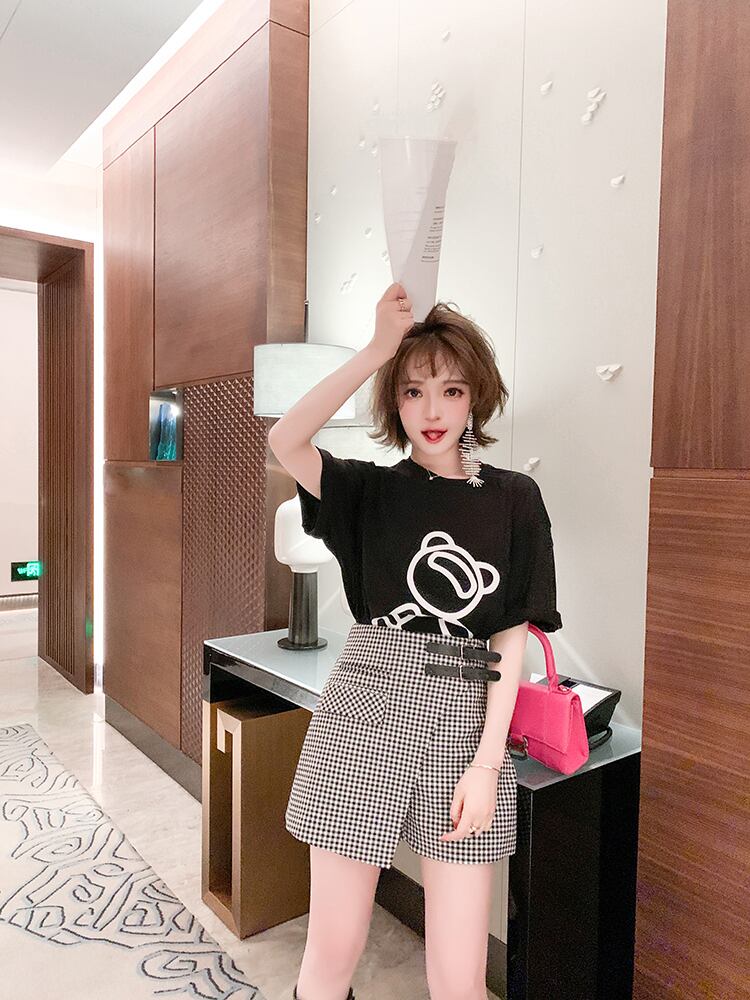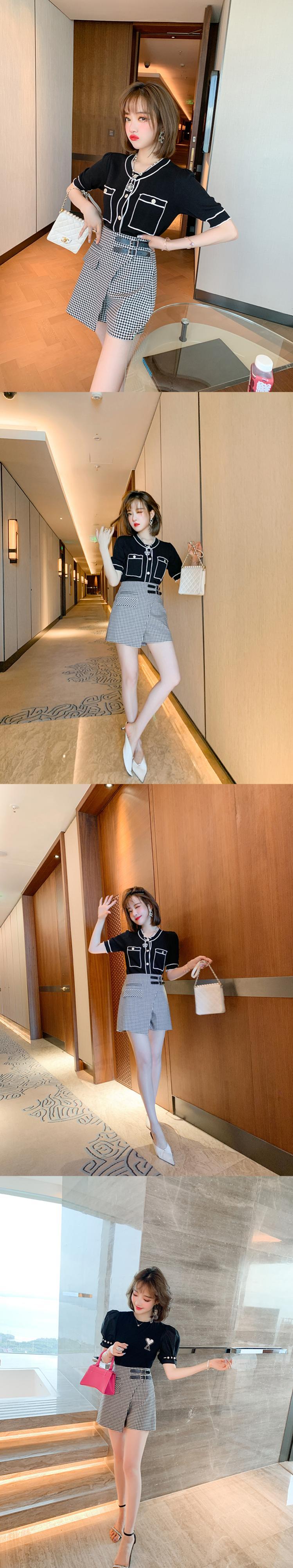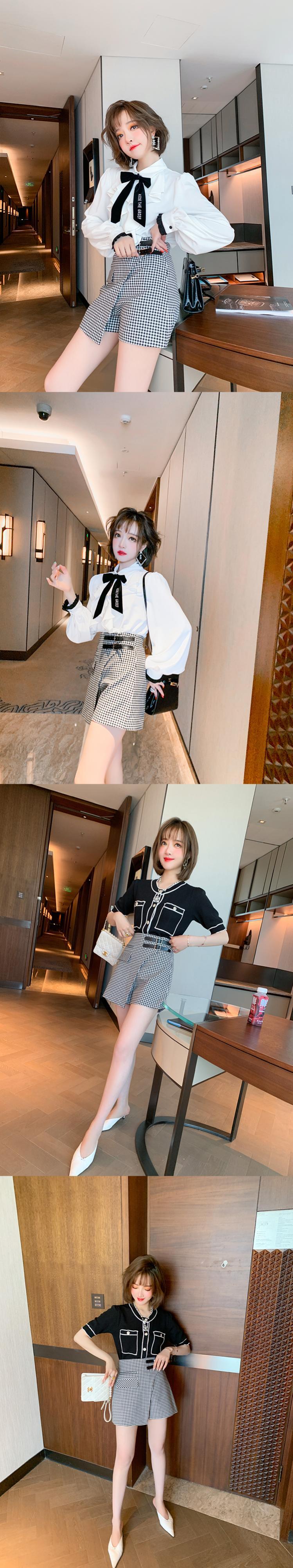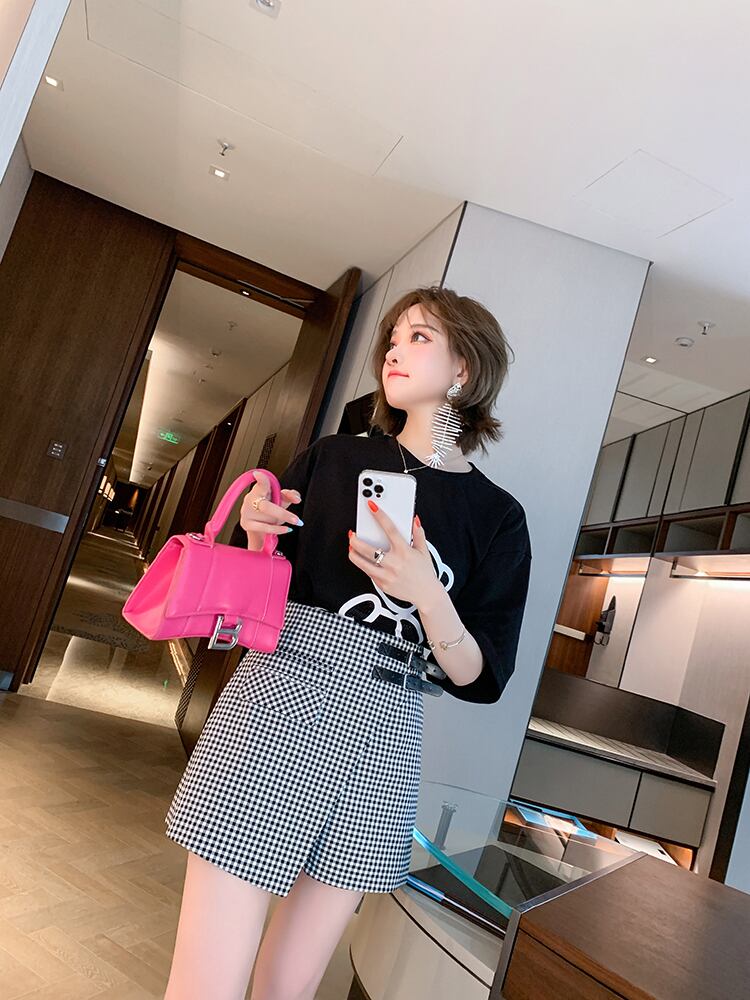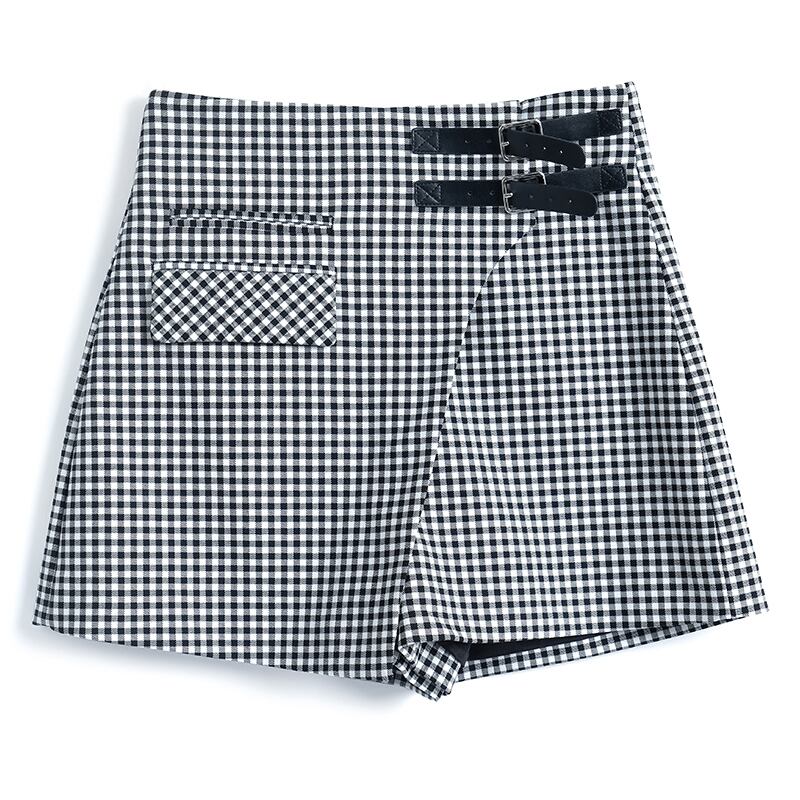 スタンダード格子柄ハイウェストウェストスリムスカート パンツ スプリングスタイル レトロ 春物 MIUCO74671254102