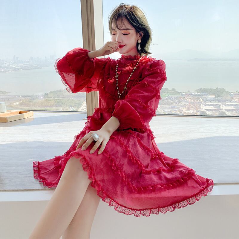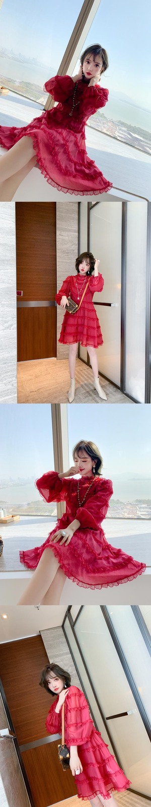 水玉レースウェストAライン格子柄スカート ドレス スプリング 春物 MIUCO97816698995