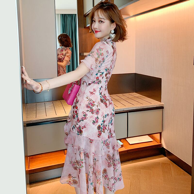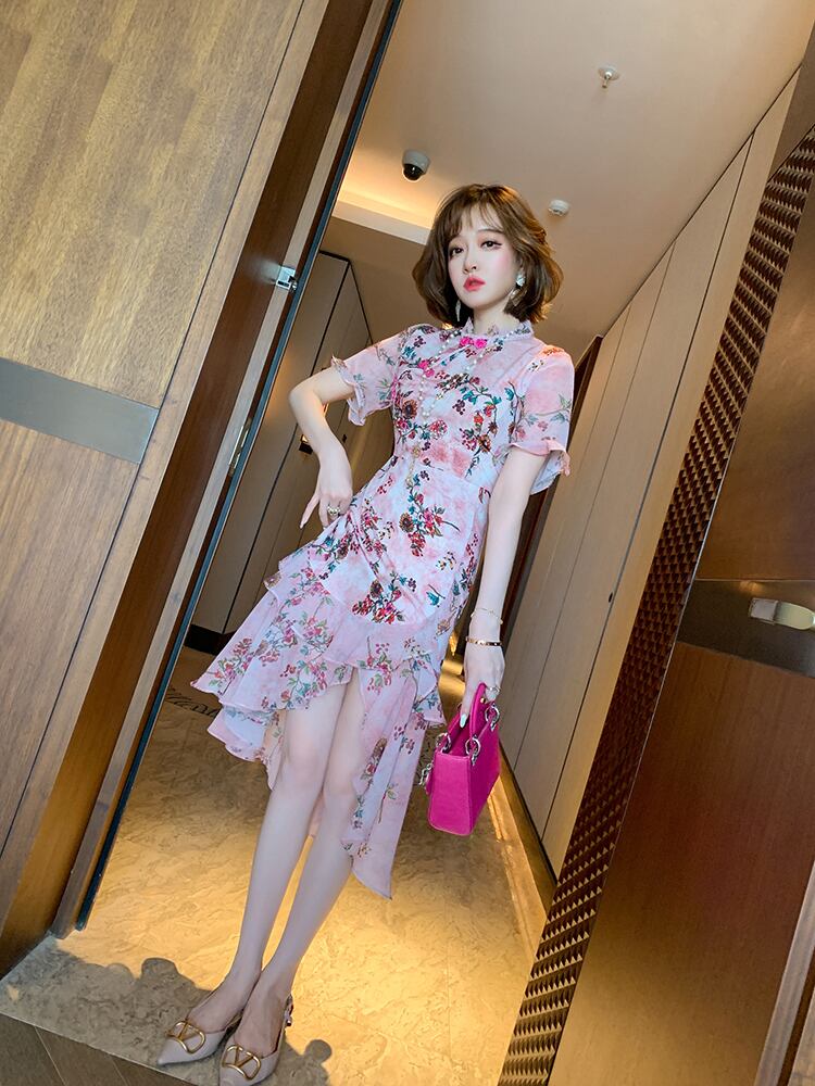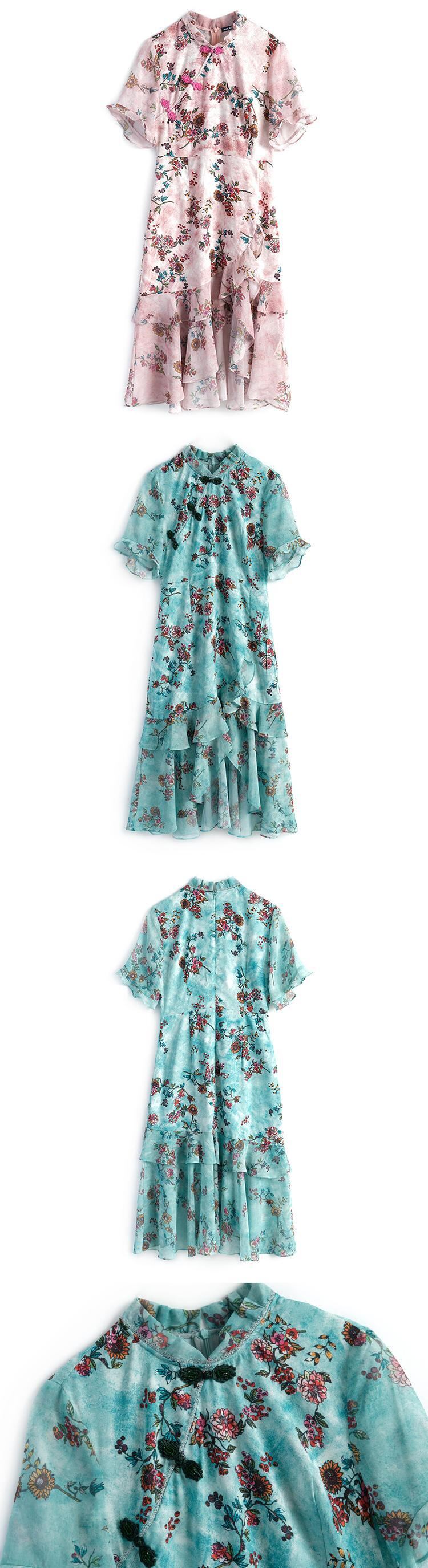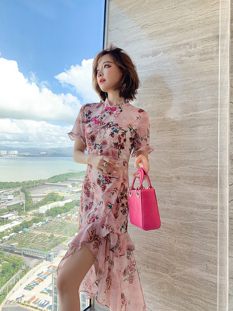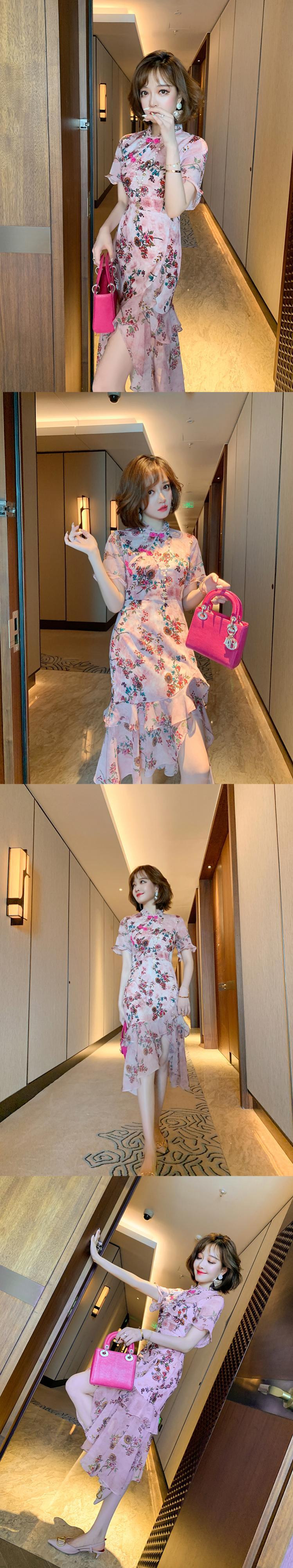 スタイルプリント柄カラーバックルラッフルドレス サマー 夏物 シルク MIUCO34893189311