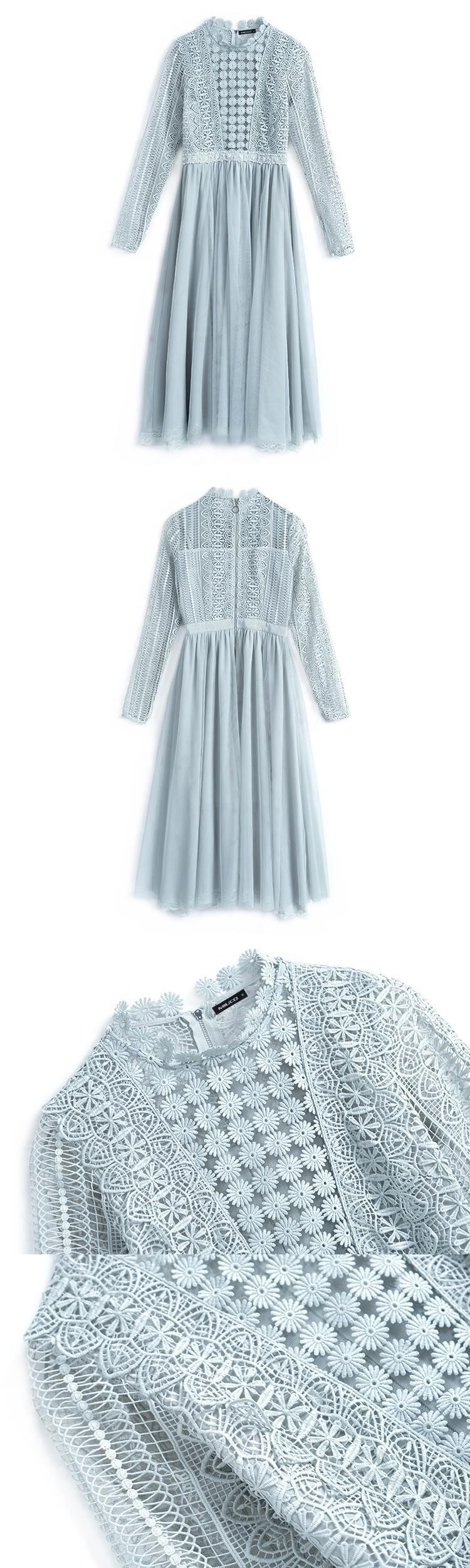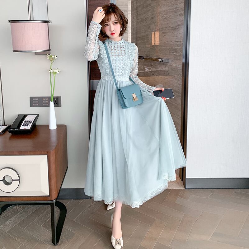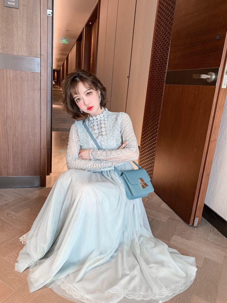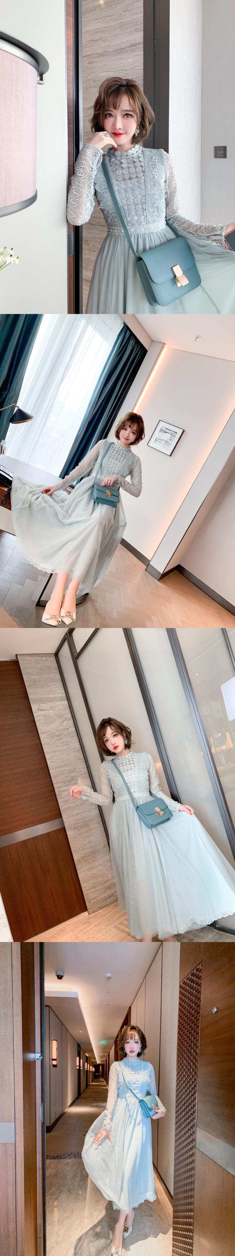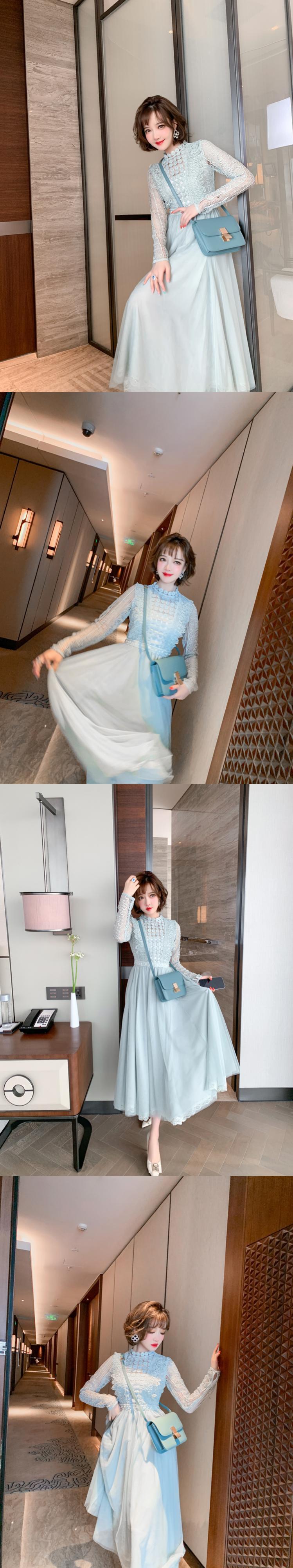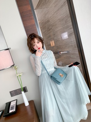 レーススタンドカラーカラードレス スプリング 春物 ステッチ MIUCO31556198984