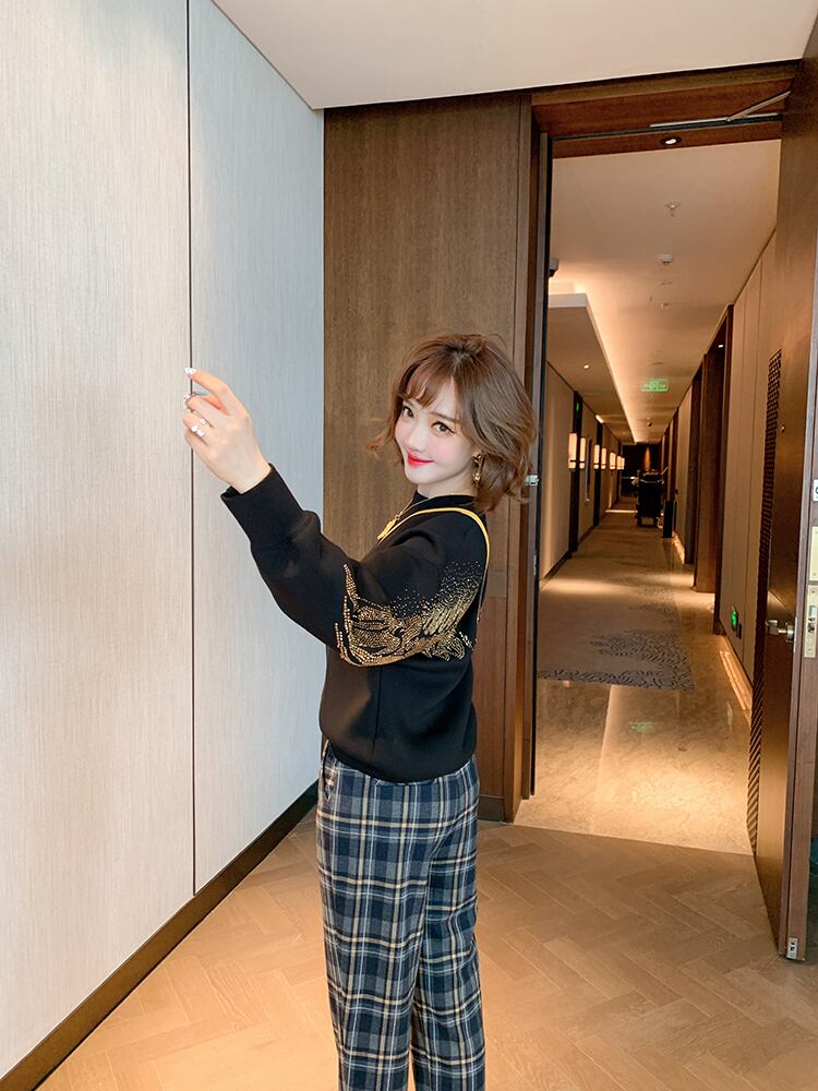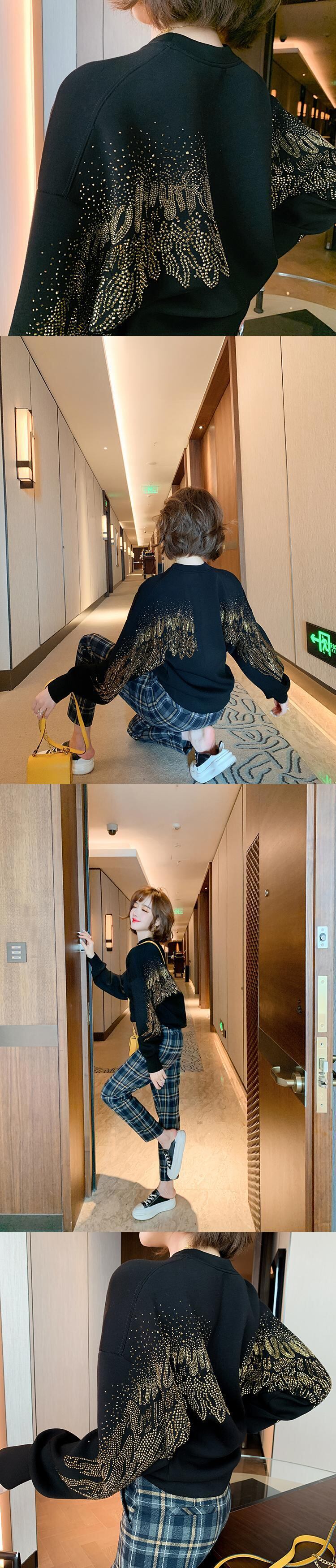 バックラインストーンルーズ薄手ラウンドネックセーター オータム 秋物 ウィンター 冬物 Oネック MIUCO78799917371